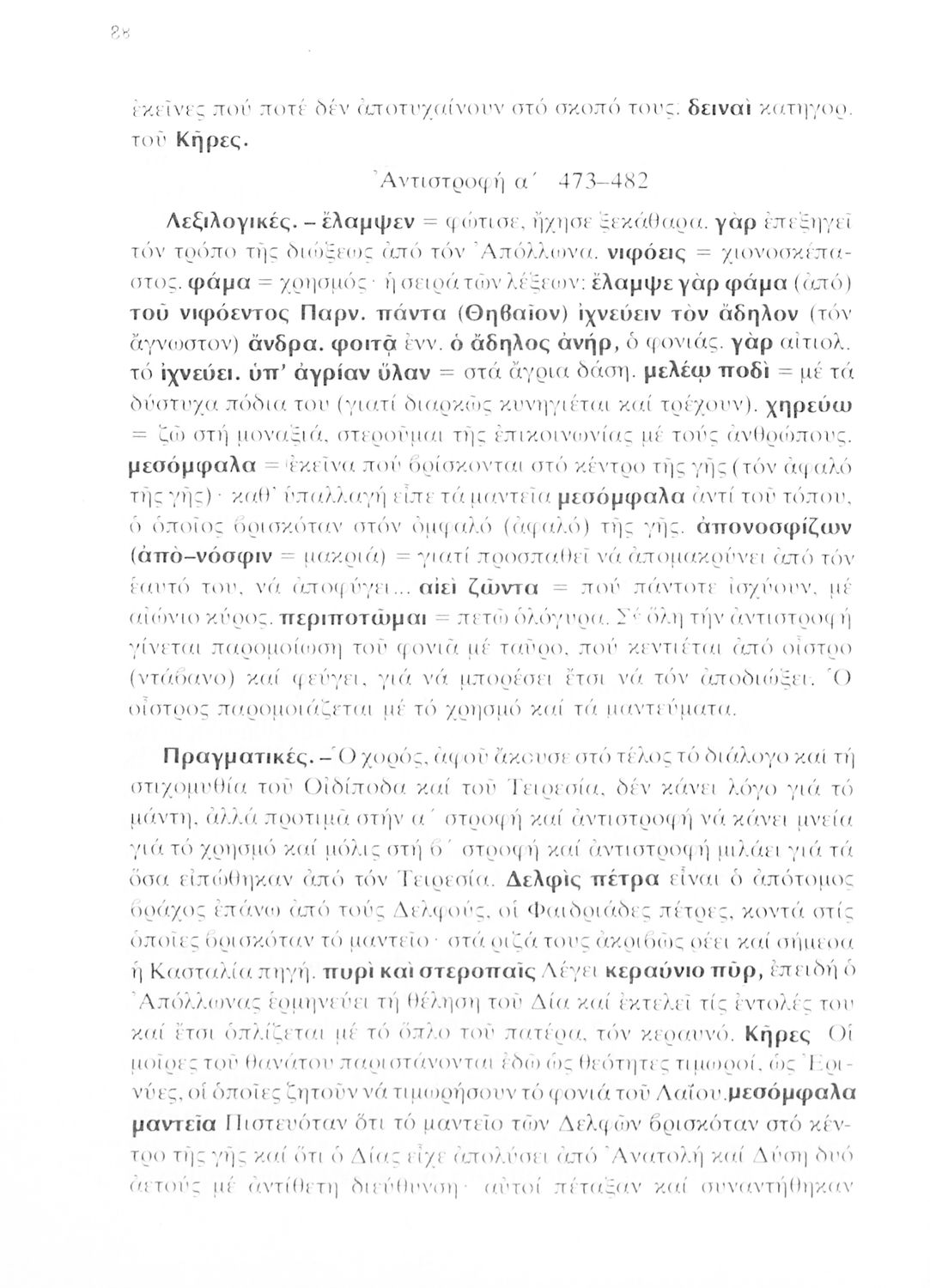Σχολικό εγχειρίδιο Αρχαίων Ελληνικών που περιλαμβάνει τις τραγωδίες του Σοφοκλή Οιδίπους Τύραννος και Αντιγόνη, εισαγωγή και ερμηνευτικά σχόλια.