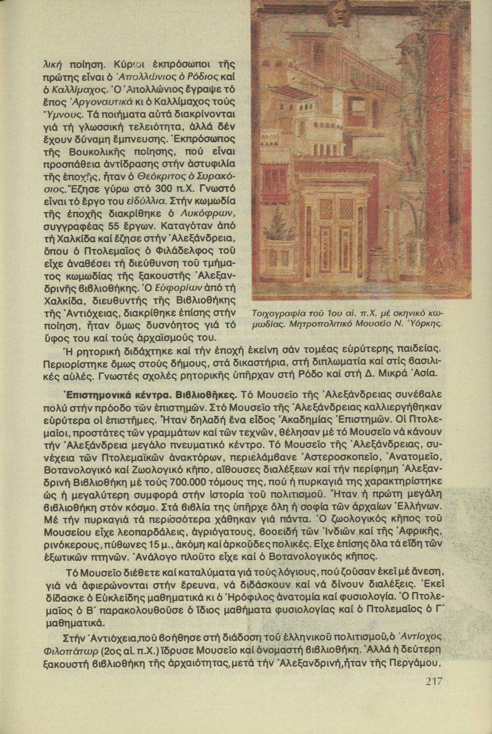 Βαθμίδα εκπαίδευσης: Δευτεροβάθμια Τάξη: Α' Λυκείου Μάθημα: Ιστορία Γλώσσα: Δημοτική Παρουσίαση περιεχομένου: Σχολικό εγχειρίδιο Ιστορίας Α΄ Λυκείου που καλύπτει την περίοδο από την περίοδο από την εμφάνιση των πρώτων πολιτισμών μέχρι την παρακμή της Ρώμης. |