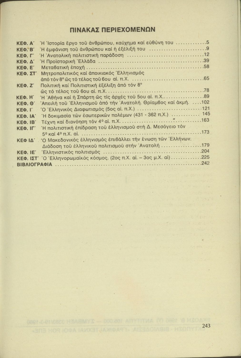 Εκδότης: Οργανισμός Εκδόσεως Διδακτικών Βιβλίων Έτος έκδοσης: 1980 Τόπος έκδοσης: Αθήνα Έκδοση: 2η Υπουργική απόφαση / Σύμβαση: 3383/19-3-1980 Έτος έγκρισης: 1980 |