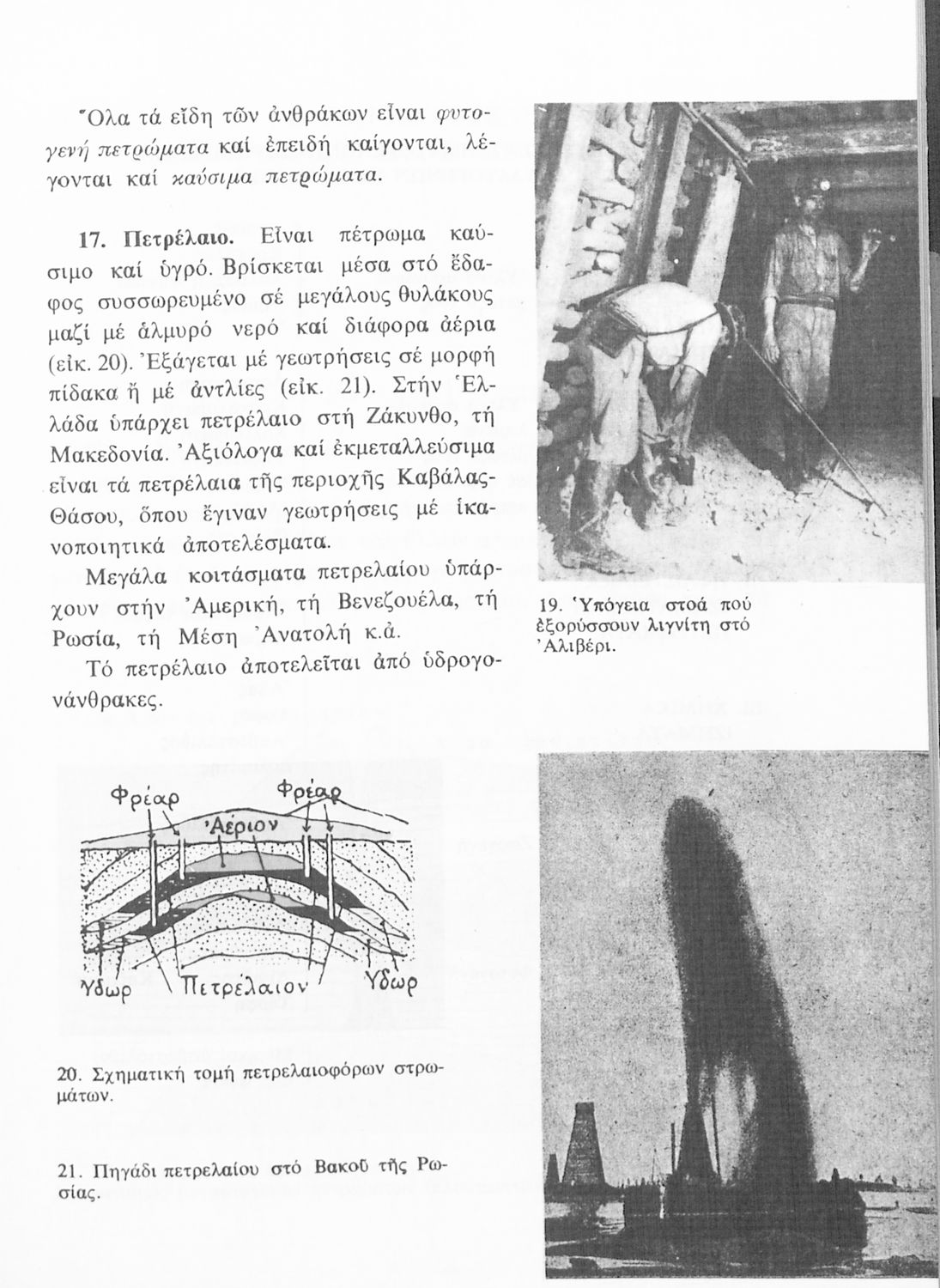 Σχολικό εγχειρίδιο Γεωλογίας/Ορυκτολογίας για την Α΄ Λυκείου που περιλαμβάνει χθονογραφική, δυναμική και ιστορική γεωλογία, και γενική και ειδική ορυκτολογία. Ο συγγραφέας ήταν καθηγητής πανεπιστημίου και η συγγραφέας φυσικός.