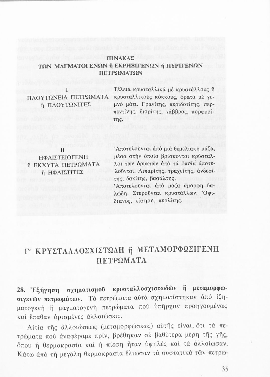 Παρουσίαση περιεχομένου: Σχολικό εγχειρίδιο Γεωλογίας/Ορυκτολογίας για την Α΄ Λυκείου που περιλαμβάνει χθονογραφική, δυναμική και ιστορική γεωλογία, και γενική και ειδική ορυκτολογία. Ο συγγραφέας ήταν καθηγητής πανεπιστημίου και η συγγραφέας φυσικός.