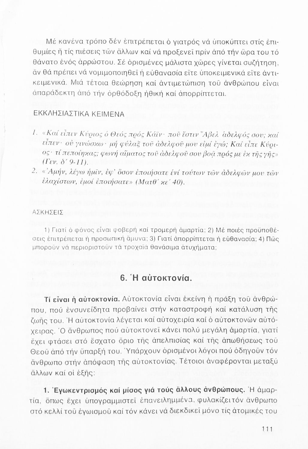Σχολικό εγχειρίδιο Θρησκευτικών Γ΄ Λυκείου που πραγματεύεται ζητήματα Χριστιανικής ηθικής από φιλοσοφική σκοπιά.