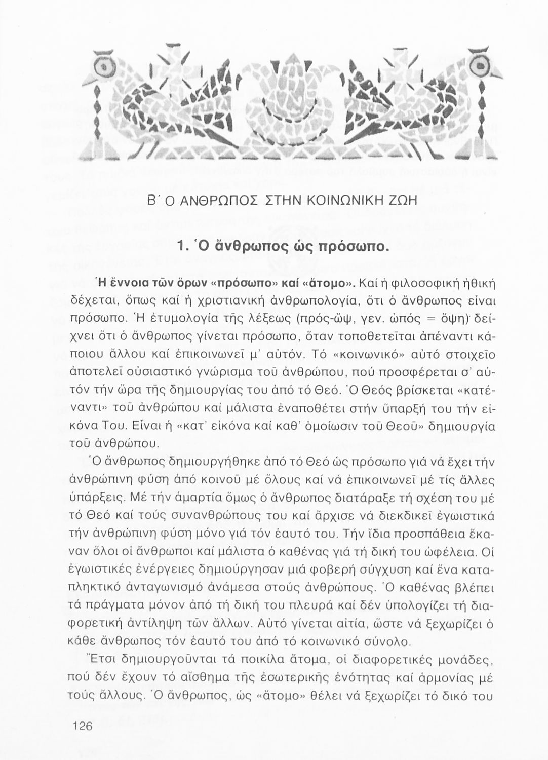 Σχολικό εγχειρίδιο Θρησκευτικών Γ΄ Λυκείου που πραγματεύεται ζητήματα Χριστιανικής ηθικής από φιλοσοφική σκοπιά.