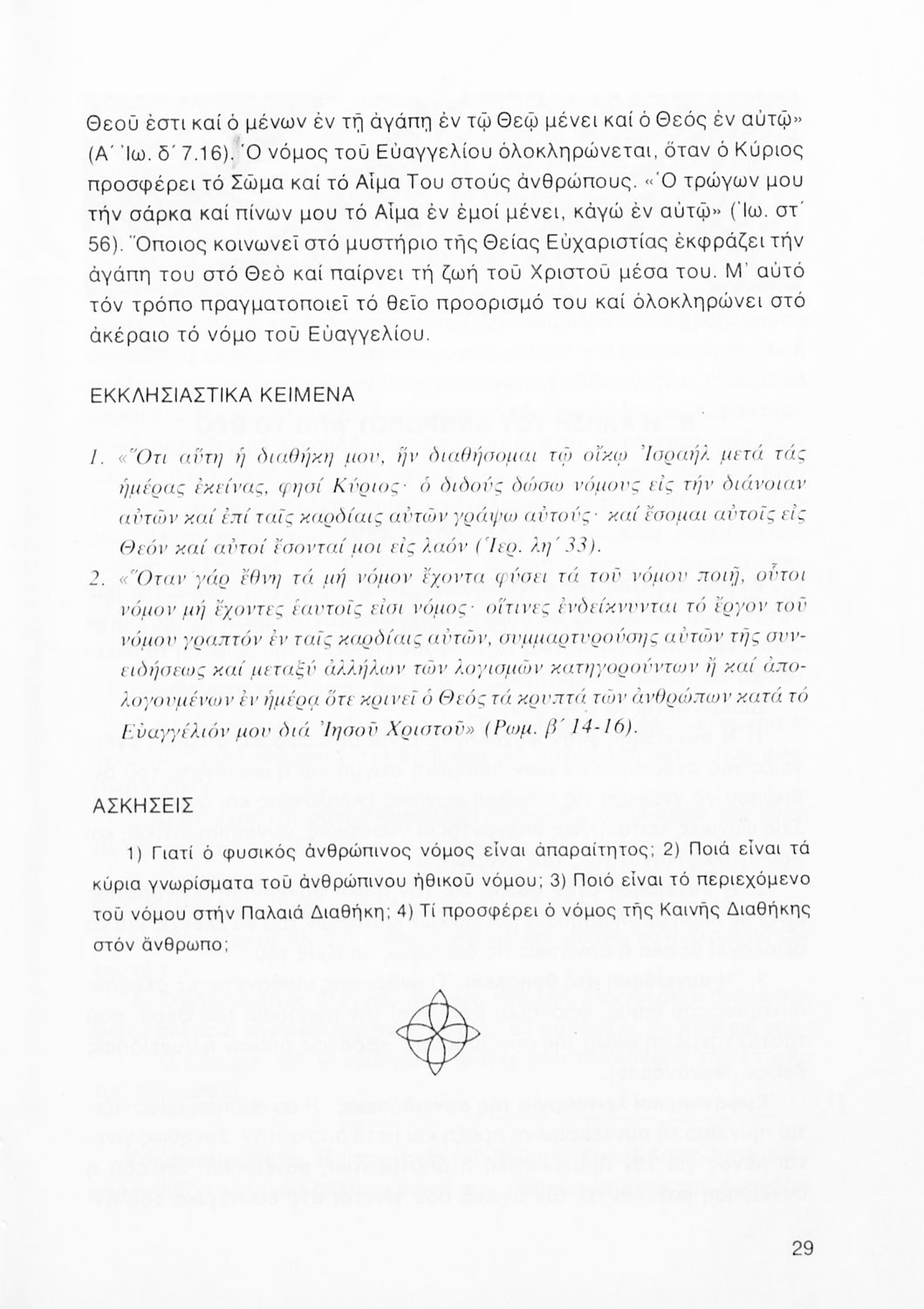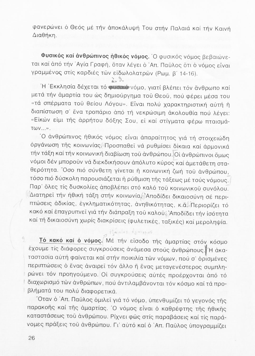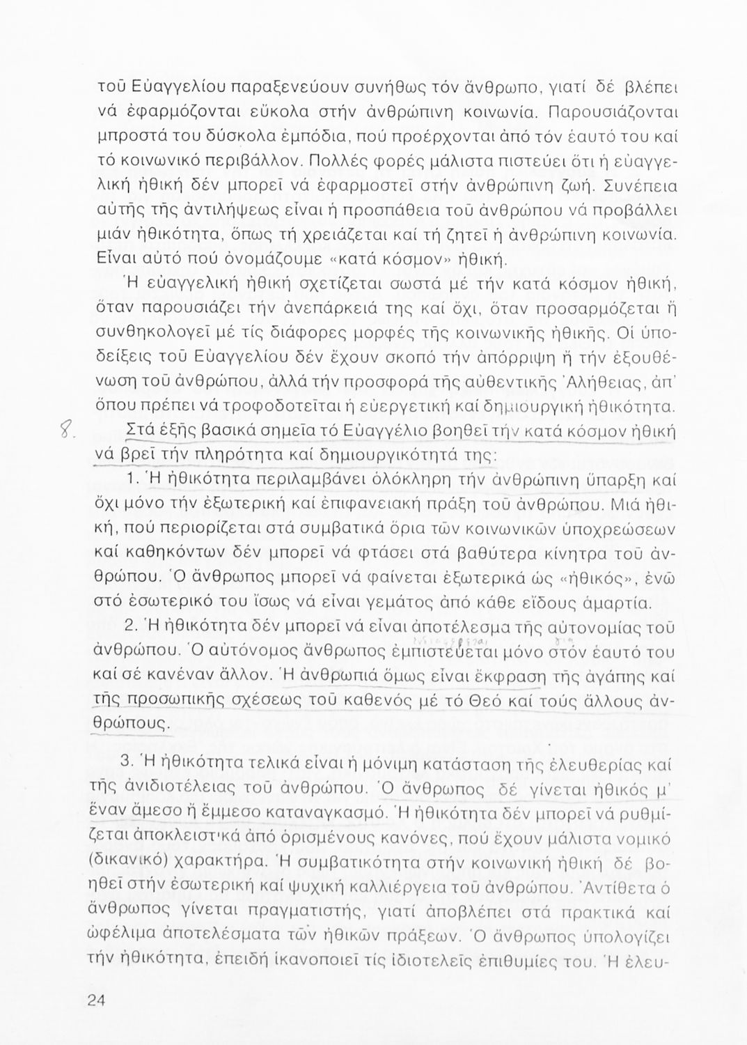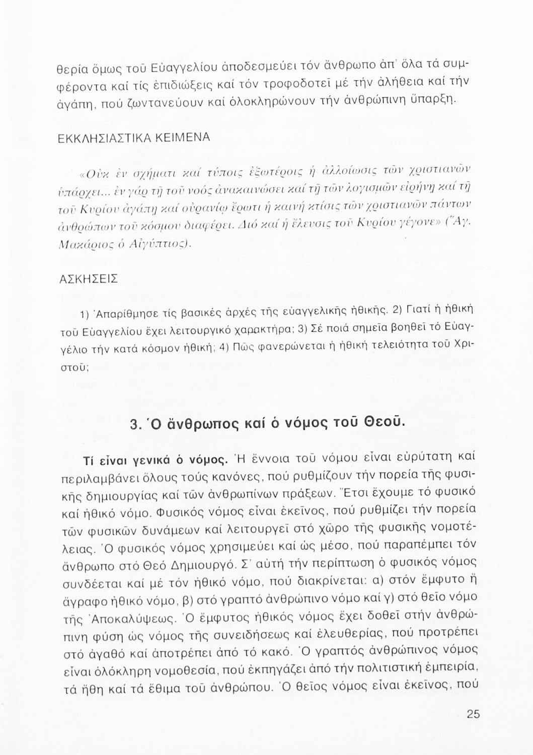 Σχολικό εγχειρίδιο Θρησκευτικών Γ΄ Λυκείου που πραγματεύεται ζητήματα Χριστιανικής ηθικής από φιλοσοφική σκοπιά.