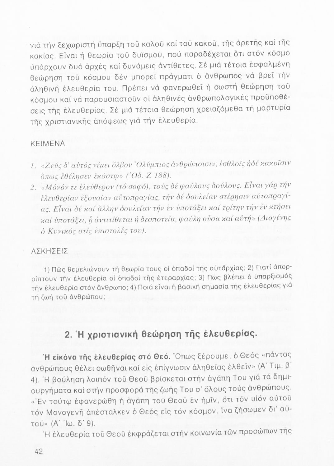 Σχολικό εγχειρίδιο Θρησκευτικών Α΄, Β΄ και Γ΄ Λυκείου που, μέσα από τα κείμενα των Πατέρων της Εκκλησίας, πραγματεύεται ζητήματα αρετής, ηθικής αμαρτίας, λύτρωσης, δικαιοσύνης και αγάπης. Επίσης αναφέρεται ...