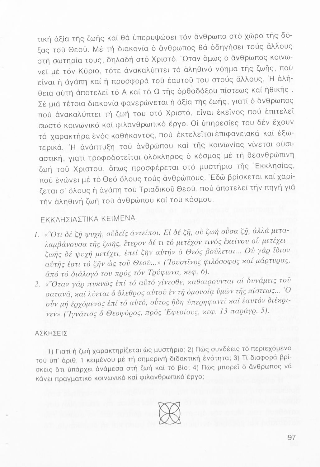 Σχολικό εγχειρίδιο Θρησκευτικών Α΄, Β΄ και Γ΄ Λυκείου που, μέσα από τα κείμενα των Πατέρων της Εκκλησίας, πραγματεύεται ζητήματα αρετής, ηθικής αμαρτίας, λύτρωσης, δικαιοσύνης και αγάπης. Επίσης αναφέρεται ...