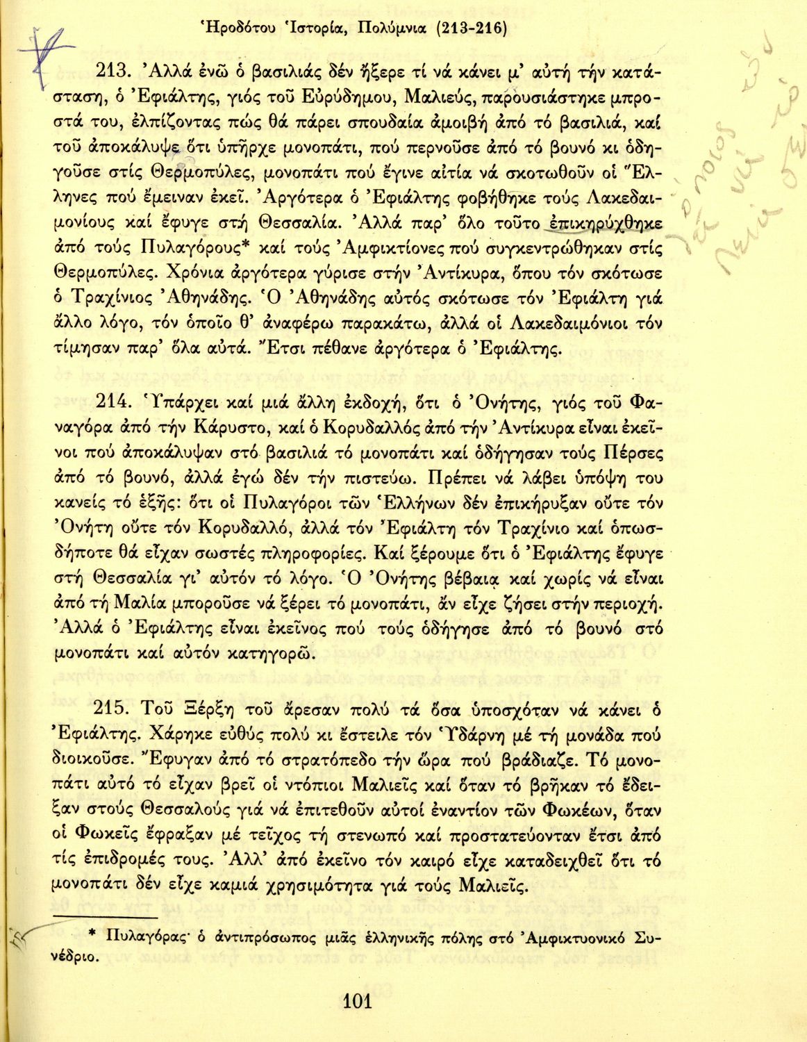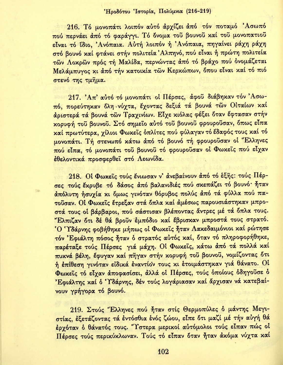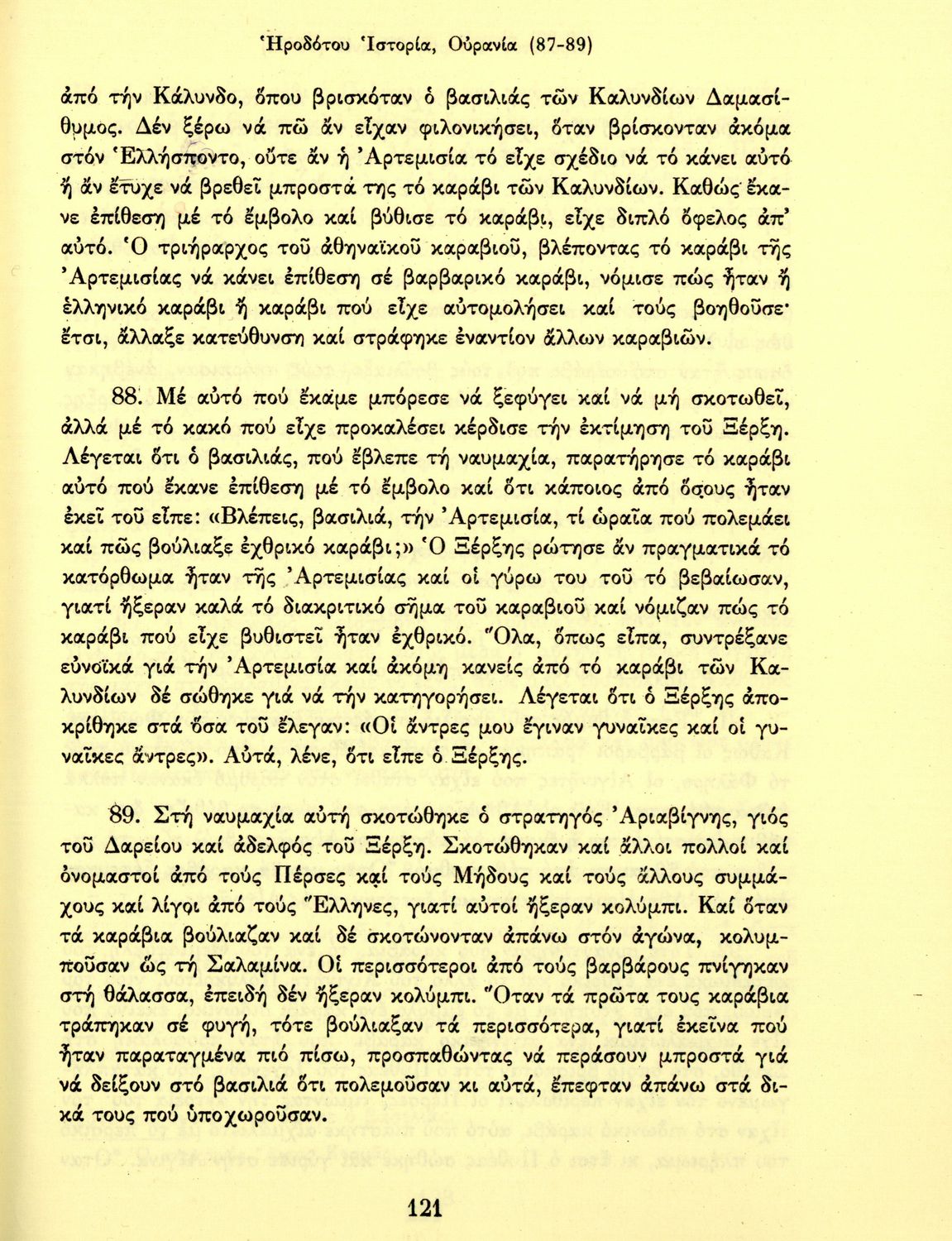 Σχολικό εγχειρίδιο Αρχαίων Ελληνικών Α΄ Γυμνασίου που περιλαμβάνει αποσπάσματα από την Ιστορία του Ηρόδοτου σε μετάφραση, εισαγωγή στη ζωή, το έργο και τη διάλεκτό του και ερμηνευτικά και πραγματολογικά σχόλια.