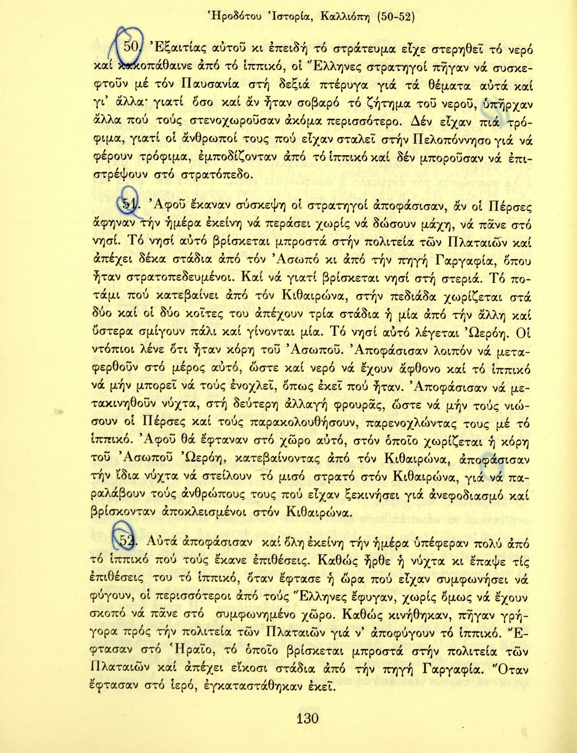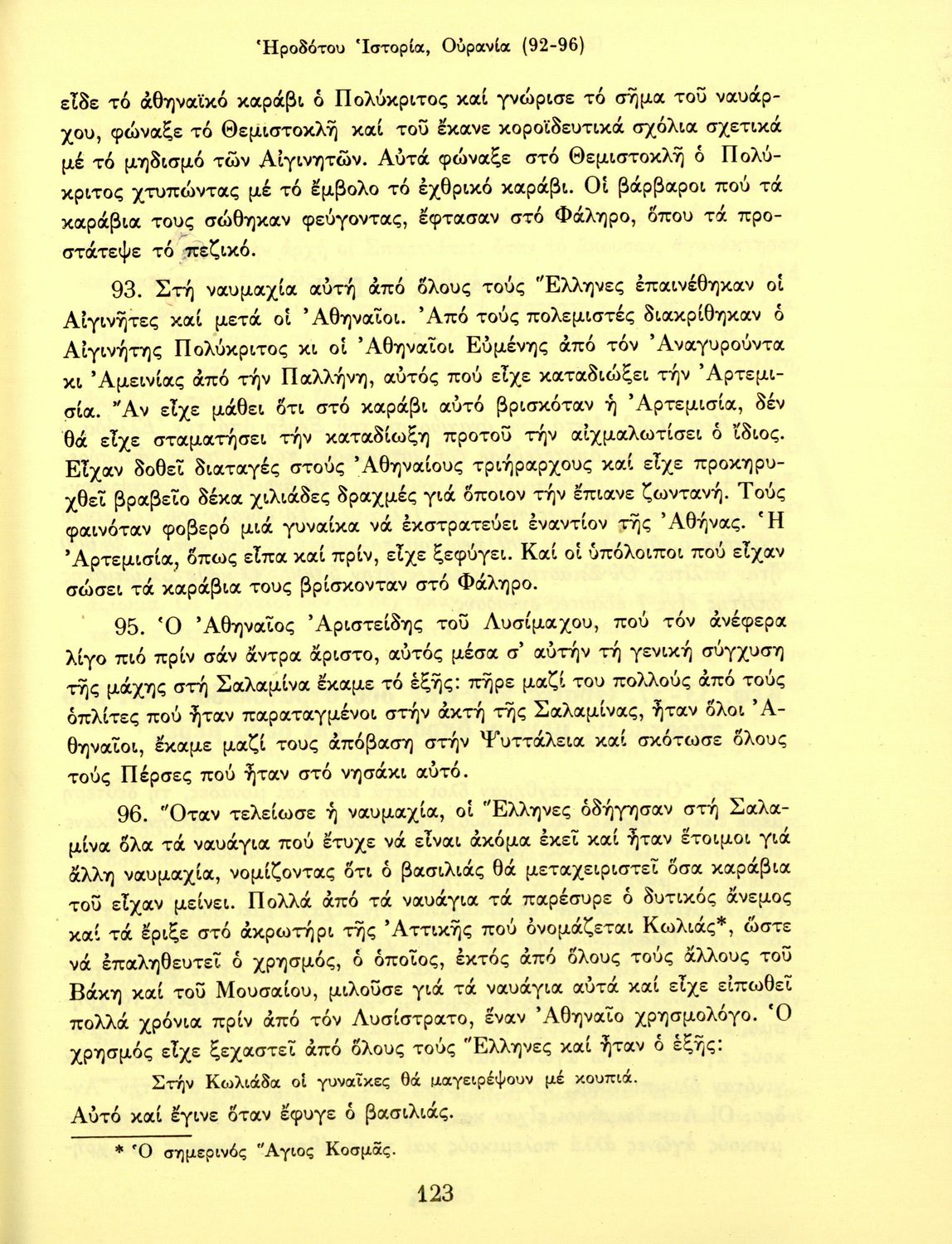 520 ## _aΣχολικό εγχειρίδιο Αρχαίων Ελληνικών Α΄ Γυμνασίου που περιλαμβάνει αποσπάσματα από την Ιστορία του Ηρόδοτου σε μετάφραση, εισαγωγή στη ζωή, το έργο και τη διάλεκτό του και ερμηνευτικά και πραγματολογικά σχόλια.