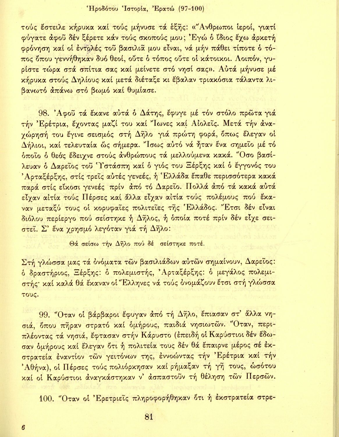 Ηροδότου Ιστορία, (εκλογές) Εισαγωγή-Μετάφραση, Α' Γυμνασίου
