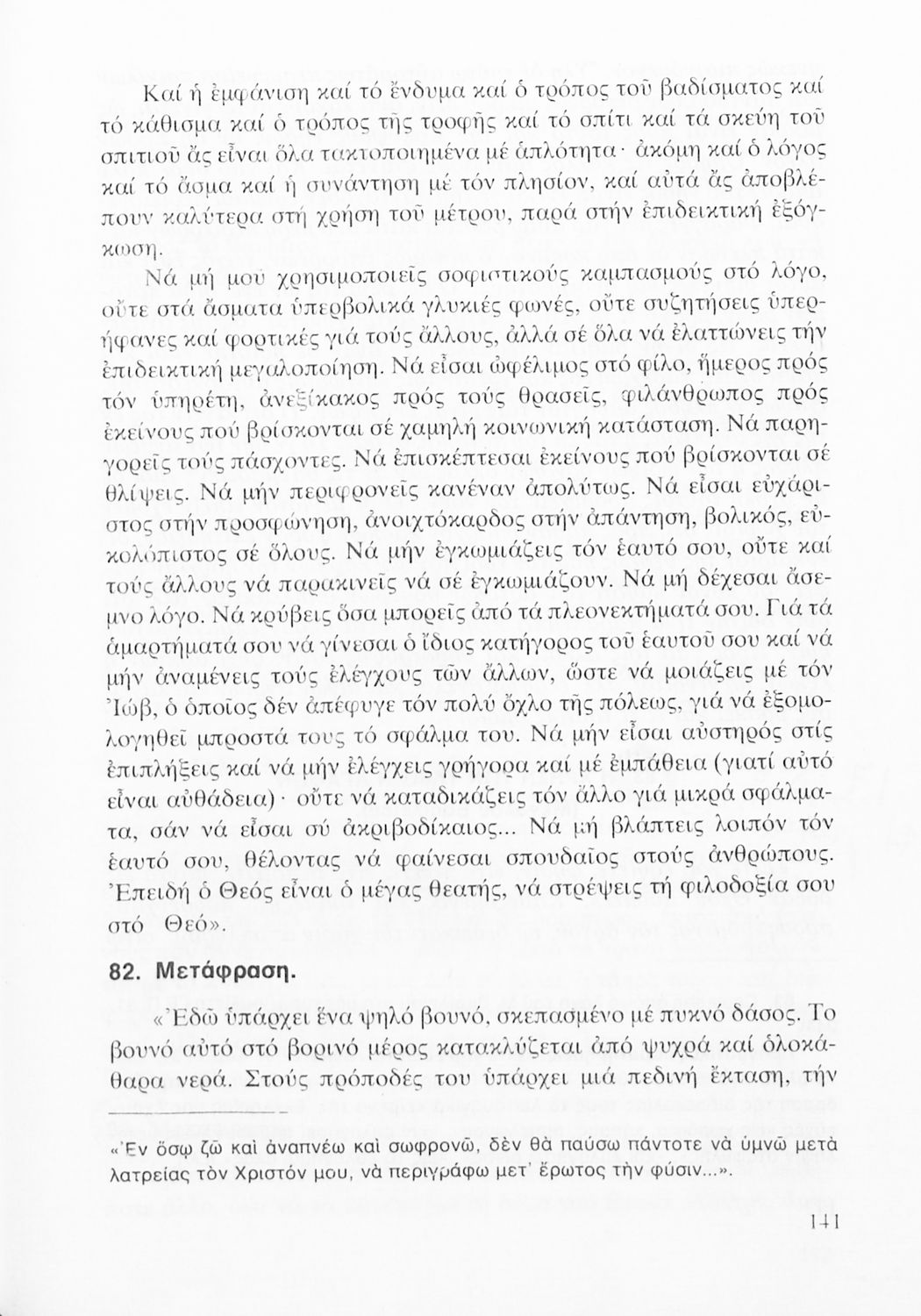 Σχολικό εγχειρίδιο Θρησκευτικών Α΄, Β΄ και Γ΄ Λυκείου που, μέσα από τα κείμενα των Πατέρων της Εκκλησίας, πραγματεύεται ζητήματα αρετής, ηθικής αμαρτίας, λύτρωσης, δικαιοσύνης και αγάπης. Επίσης αναφέρεται στις σχέσεις των ανθρώπων και στις σχέσεις τους με το Θεό.