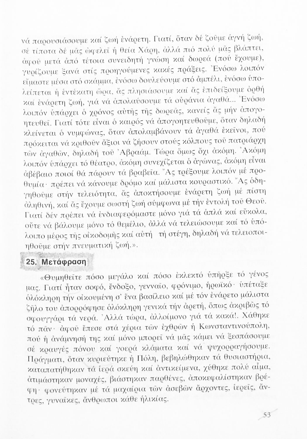 Σχολικό εγχειρίδιο Θρησκευτικών Α΄, Β΄ και Γ΄ Λυκείου που, μέσα από τα κείμενα των Πατέρων της Εκκλησίας, πραγματεύεται ζητήματα αρετής, ηθικής αμαρτίας, λύτρωσης, δικαιοσύνης και αγάπης. Επίσης αναφέρεται στις σχέσεις των ανθρώπων και στις σχέσεις τους με το Θεό.