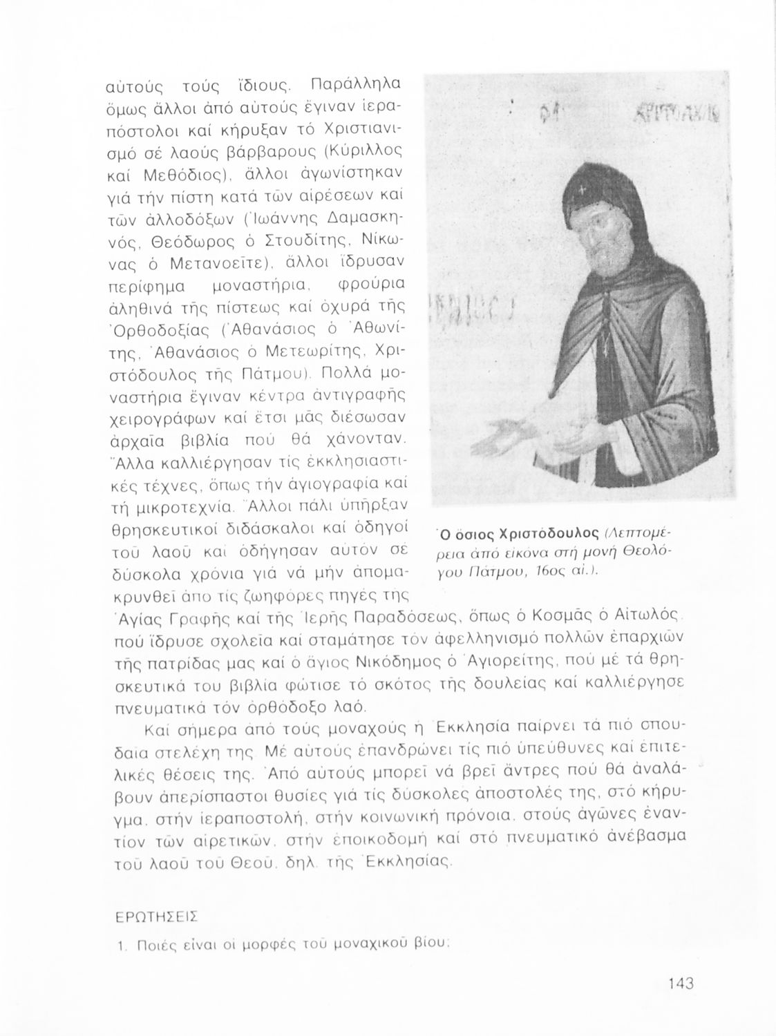Σχολικό εγχειρίδιο Θρησκευτικών για την Β΄ Γυμνασίου. Περιέχει την ιστορία της Εκκλησίας από την ίδρυσή της μέχρι την δημιουργία της Εκκλησίας της Ελλάδας.
