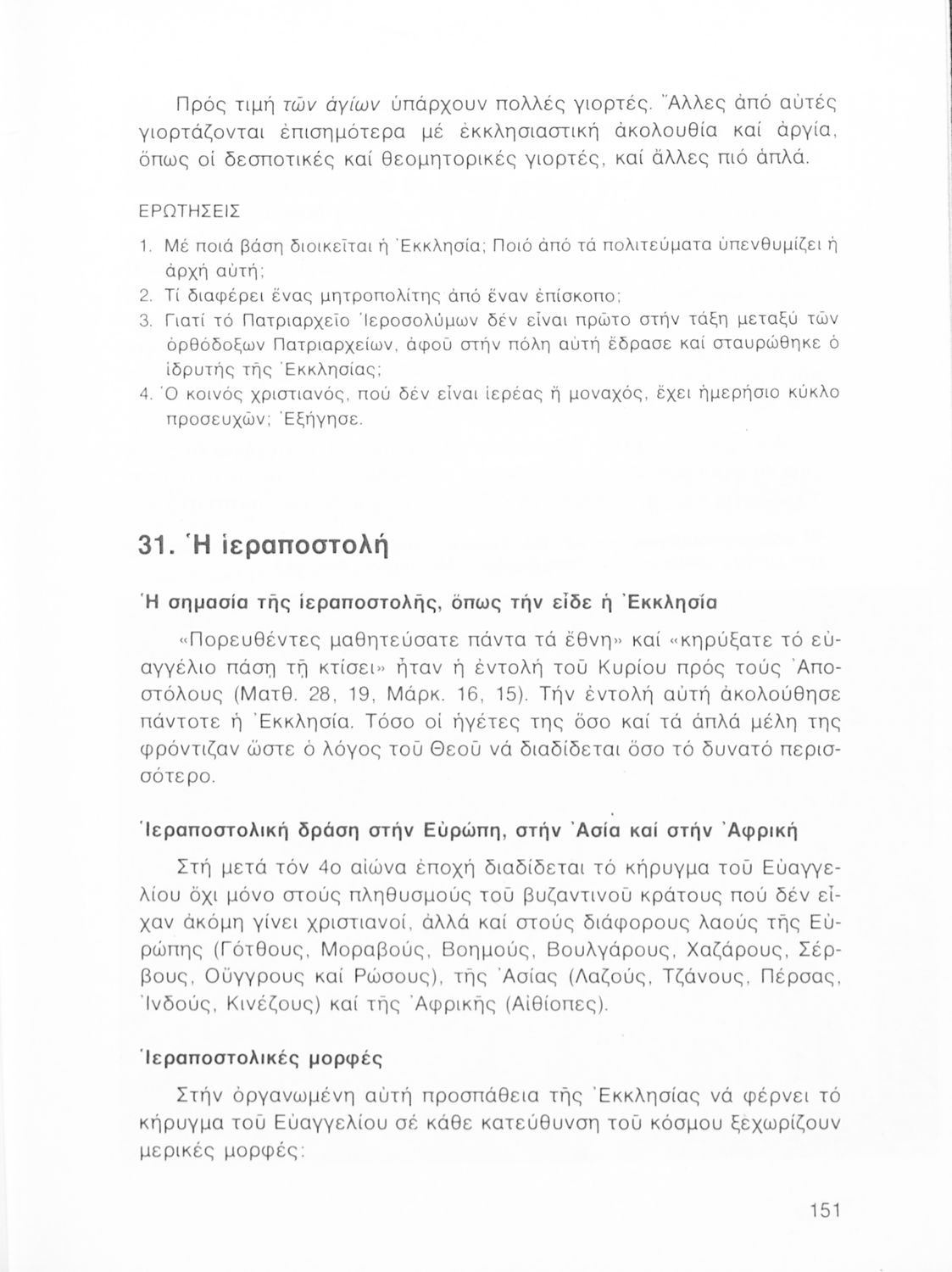 Σχολικό εγχειρίδιο Θρησκευτικών Β΄ Γυμνασίου που αποτελεί μια ιστορική επισκόπηση της Ορθόδοξης Εκκλησίας από την ίδρυσή της μέχρι την ίδρυση της Εκκλησίας της Ελλάδας.