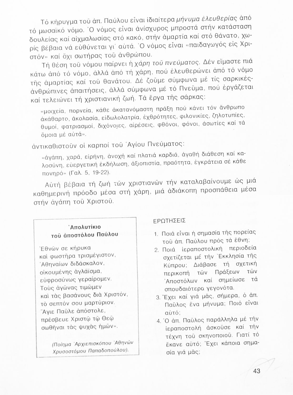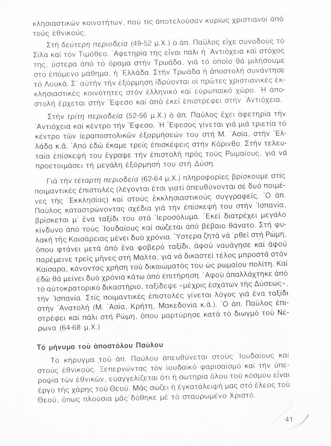 Σχολικό εγχειρίδιο Θρησκευτικών για την Β΄ Γυμνασίου. Περιέχει την ιστορία της Εκκλησίας από την ίδρυσή της μέχρι την δημιουργία της Εκκλησίας της Ελλάδας.