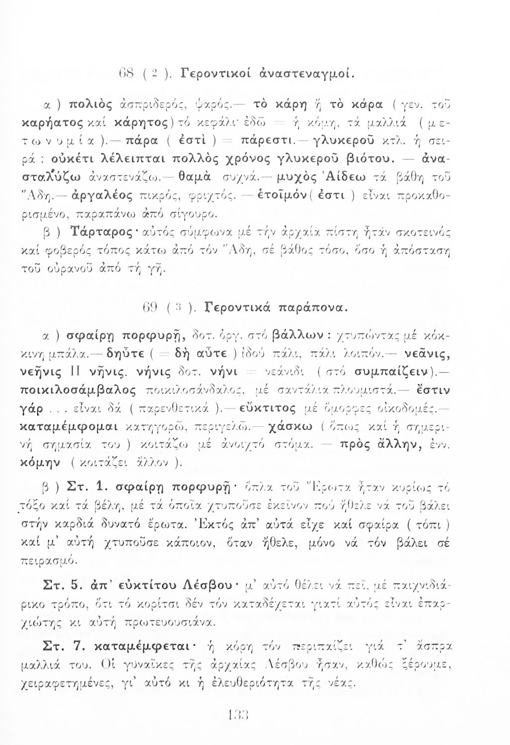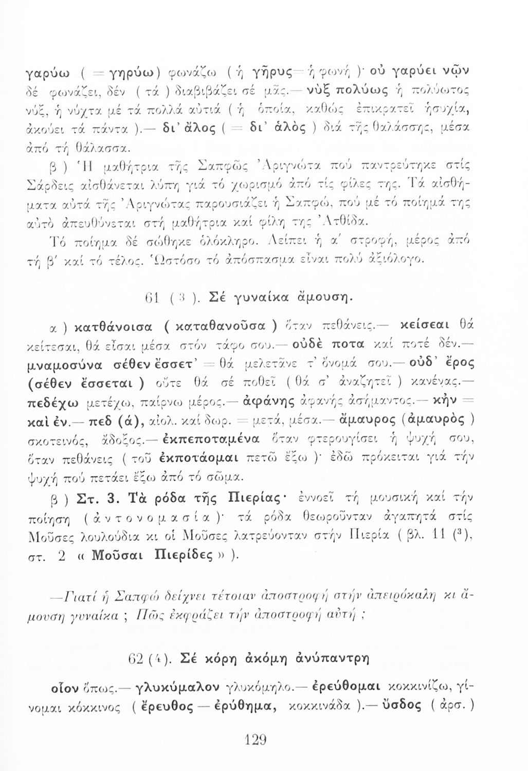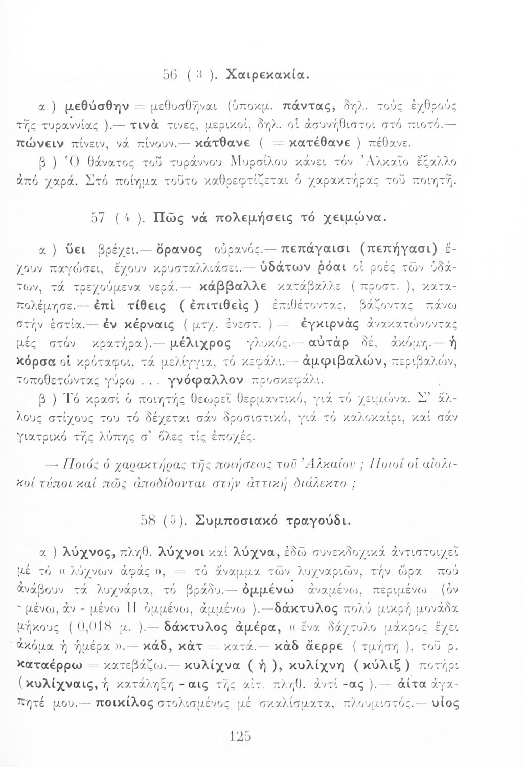 Σχολικό εγχειρίδιο Αρχαίων Ελληνικών Γ΄ Λυκείου που περιλαμβάνει αποσπάσματα έργων αρχαίων Ελλήνων λυρικών, πολιτικές και γνωμικές ελεγείες, ιάμβους και επιγράμματα. Περιέχει υπόμνημα με ερμηνευτικά, πραγματολογικά, γλωσσικά και γραμματικά σχόλια και μετρικό παράρτημα.