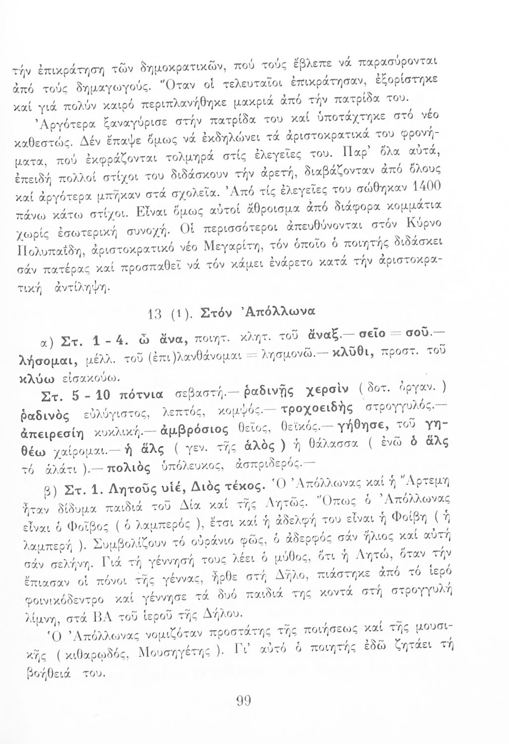 Τίτλος: Αρχαίοι Έλληνες λυρικοί, (εκλογές), Γ΄ λυκείου