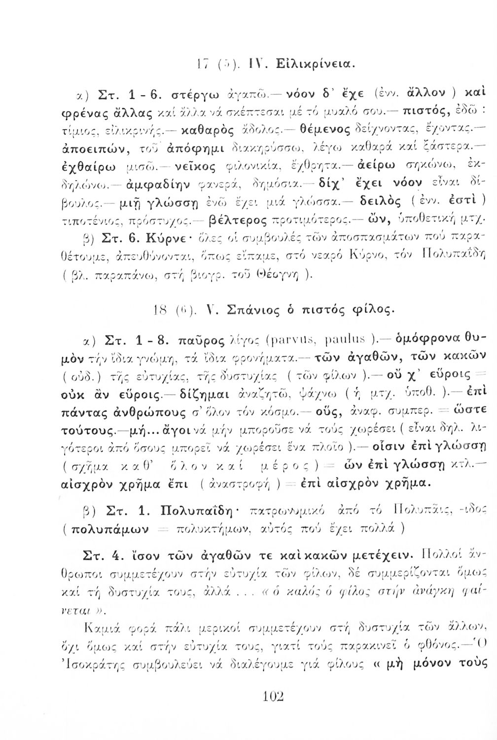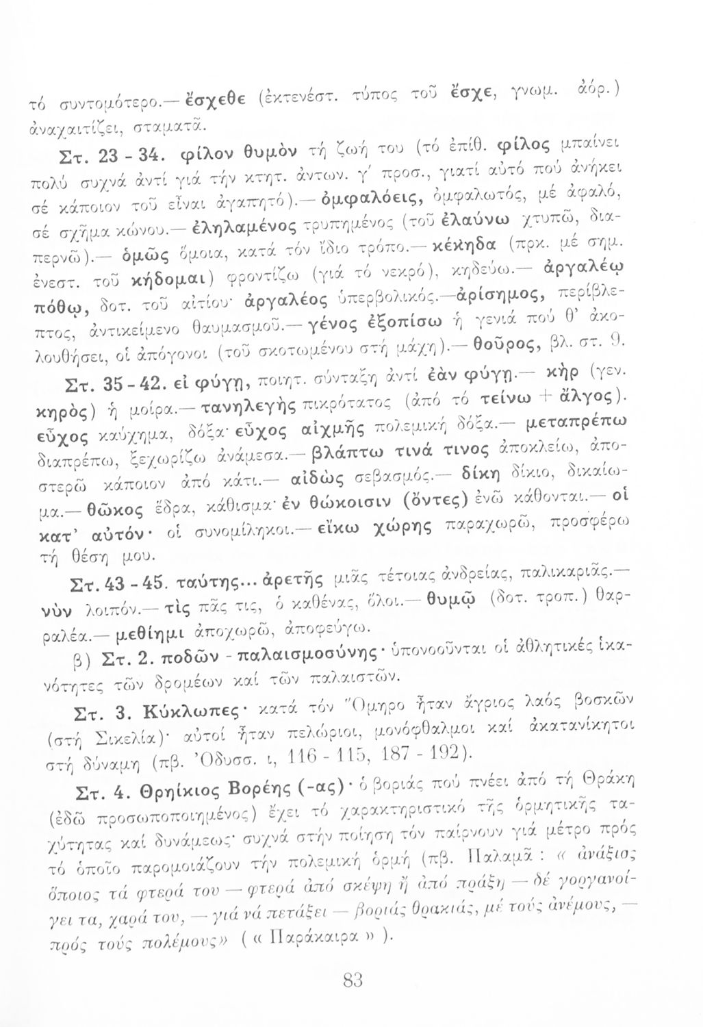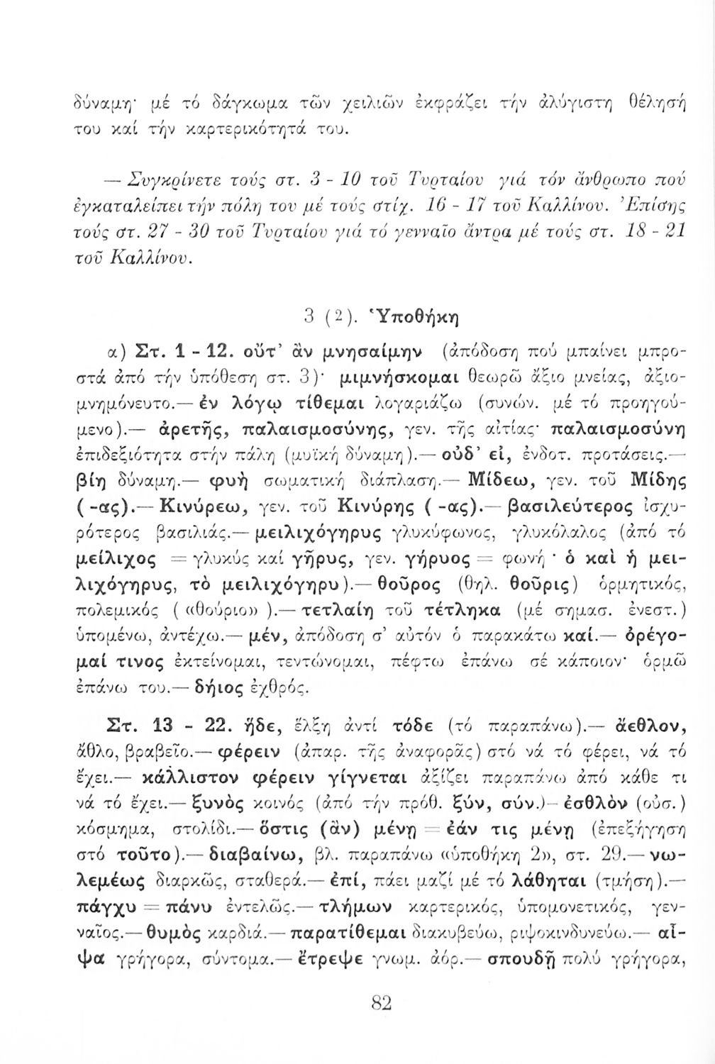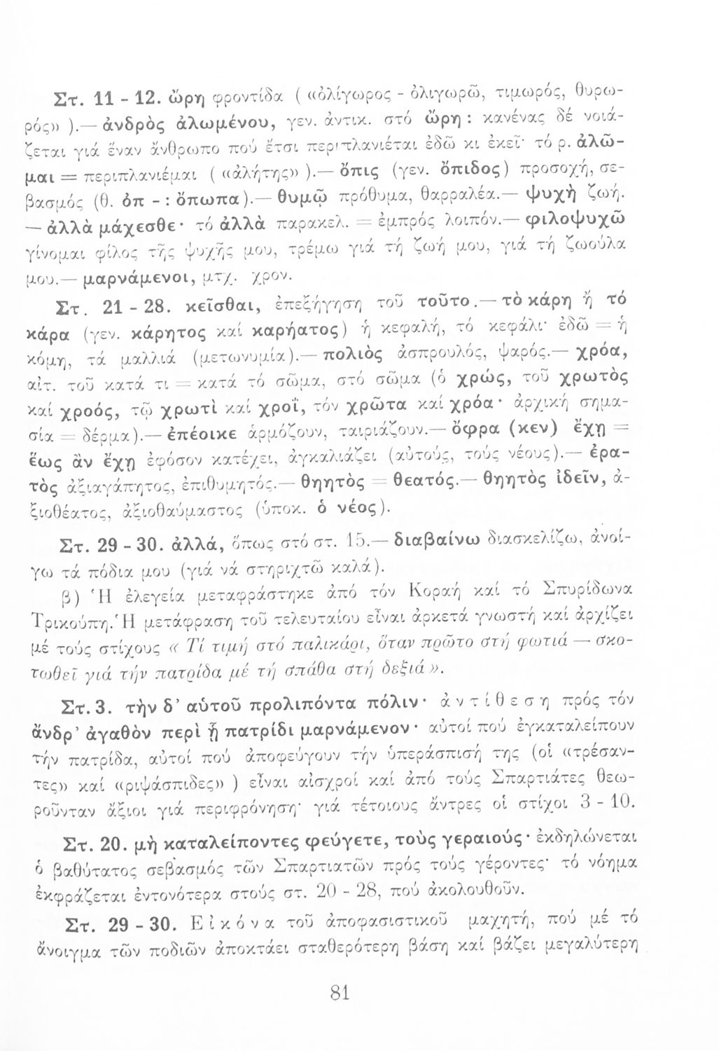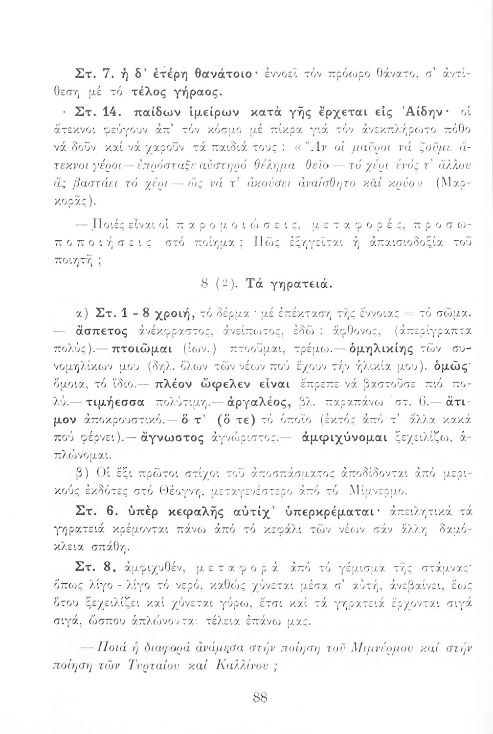 Σχολικό εγχειρίδιο Αρχαίων Ελληνικών Γ΄ Λυκείου που περιλαμβάνει αποσπάσματα έργων αρχαίων Ελλήνων λυρικών, πολιτικές και γνωμικές ελεγείες, ιάμβους και επιγράμματα. Περιέχει υπόμνημα με ερμηνευτικά, πραγματολογικά, γλωσσικά και γραμματικά σχόλια και μετρικό παράρτημα.