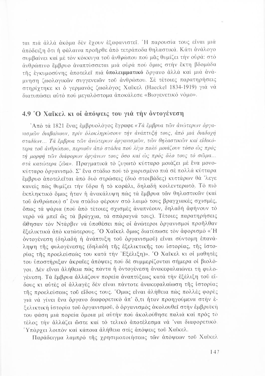 Σχολικό εγχειρίδιο Βιολογίας Γ΄ Γυμνασίου που εστιάζει στις συνθήκες γέννησης, μεταβολής και θανάτου των έμβιων οργανισμών. Φέρει το σύμβολο της δικτατορίας.