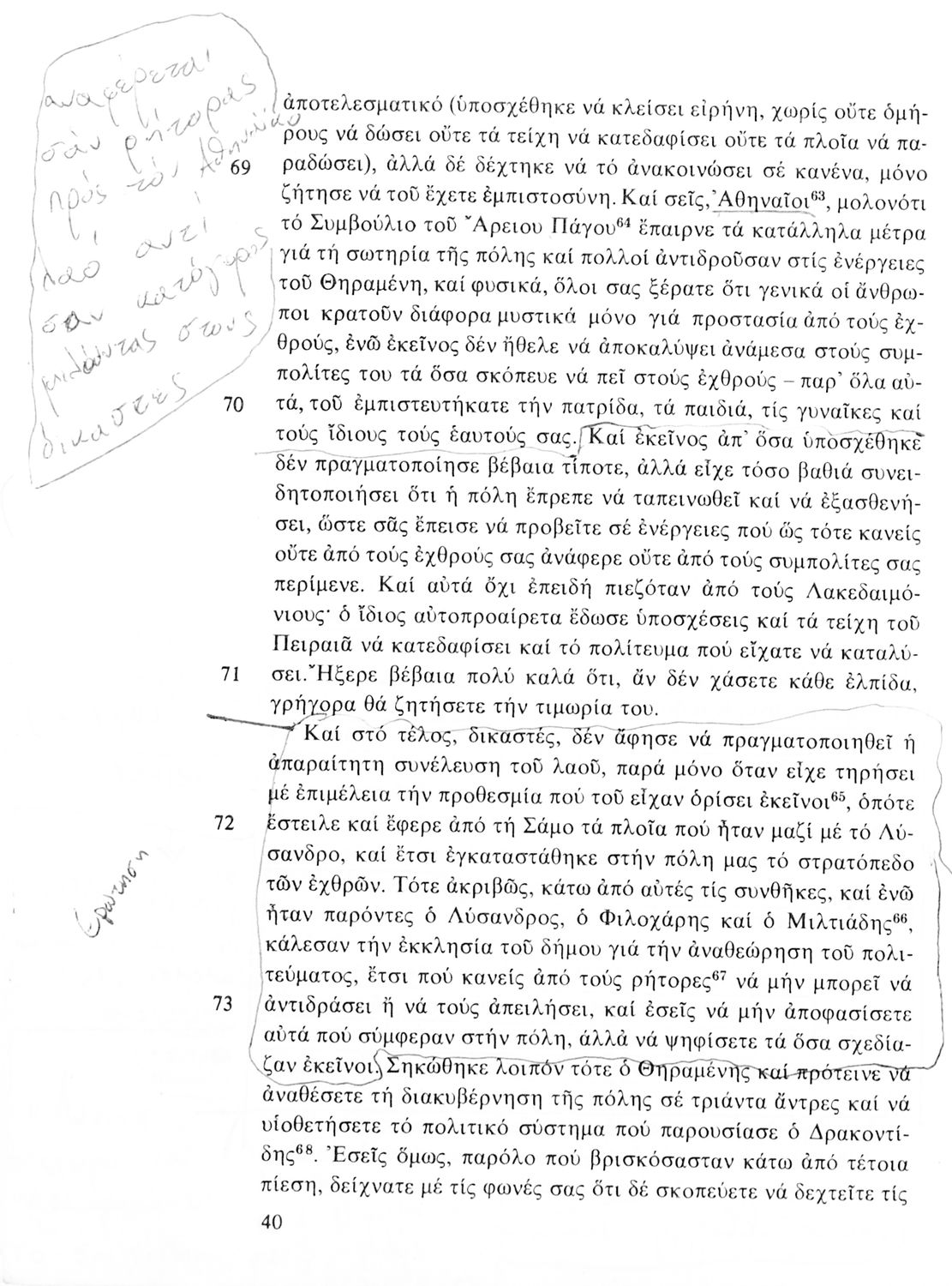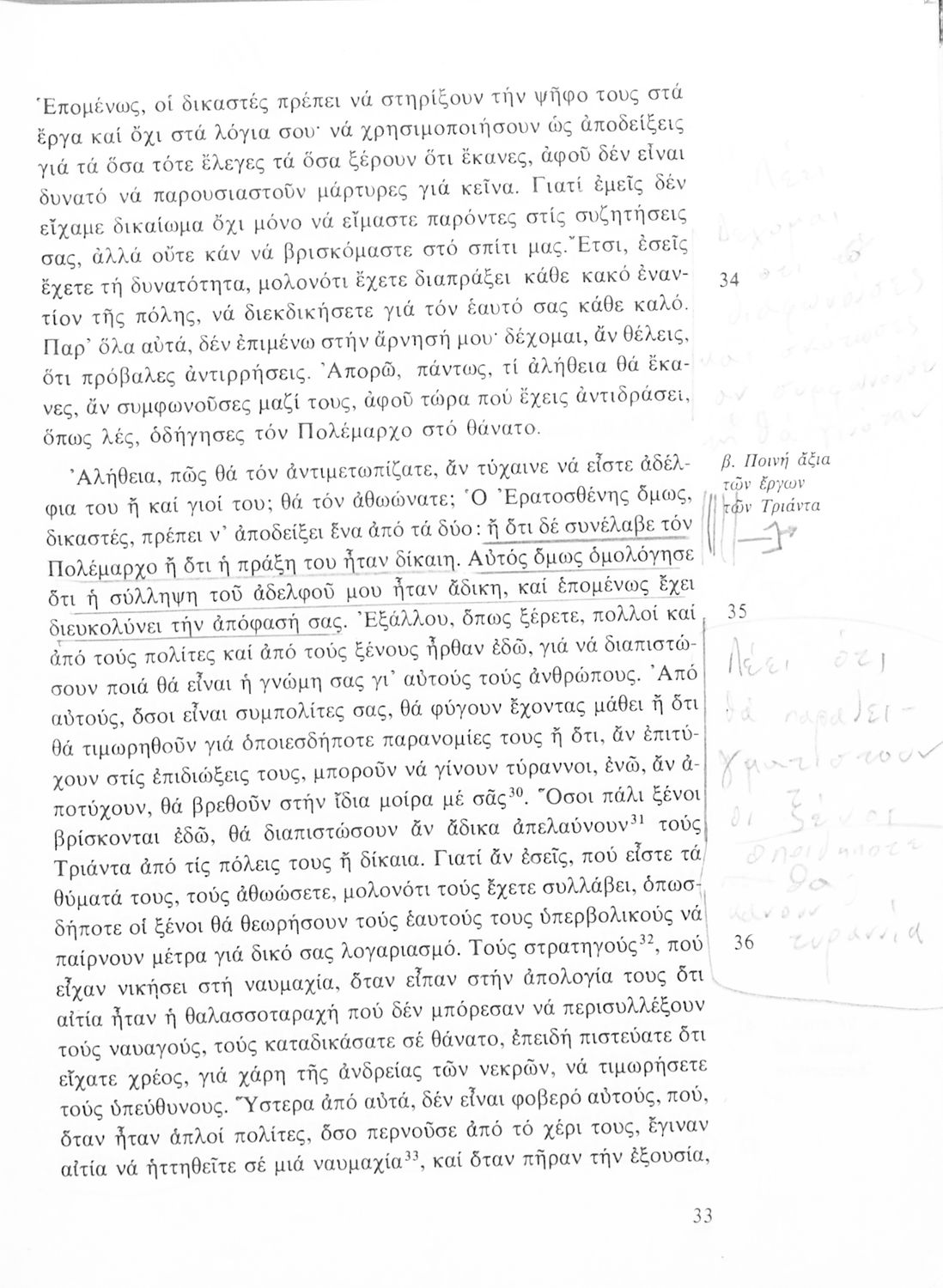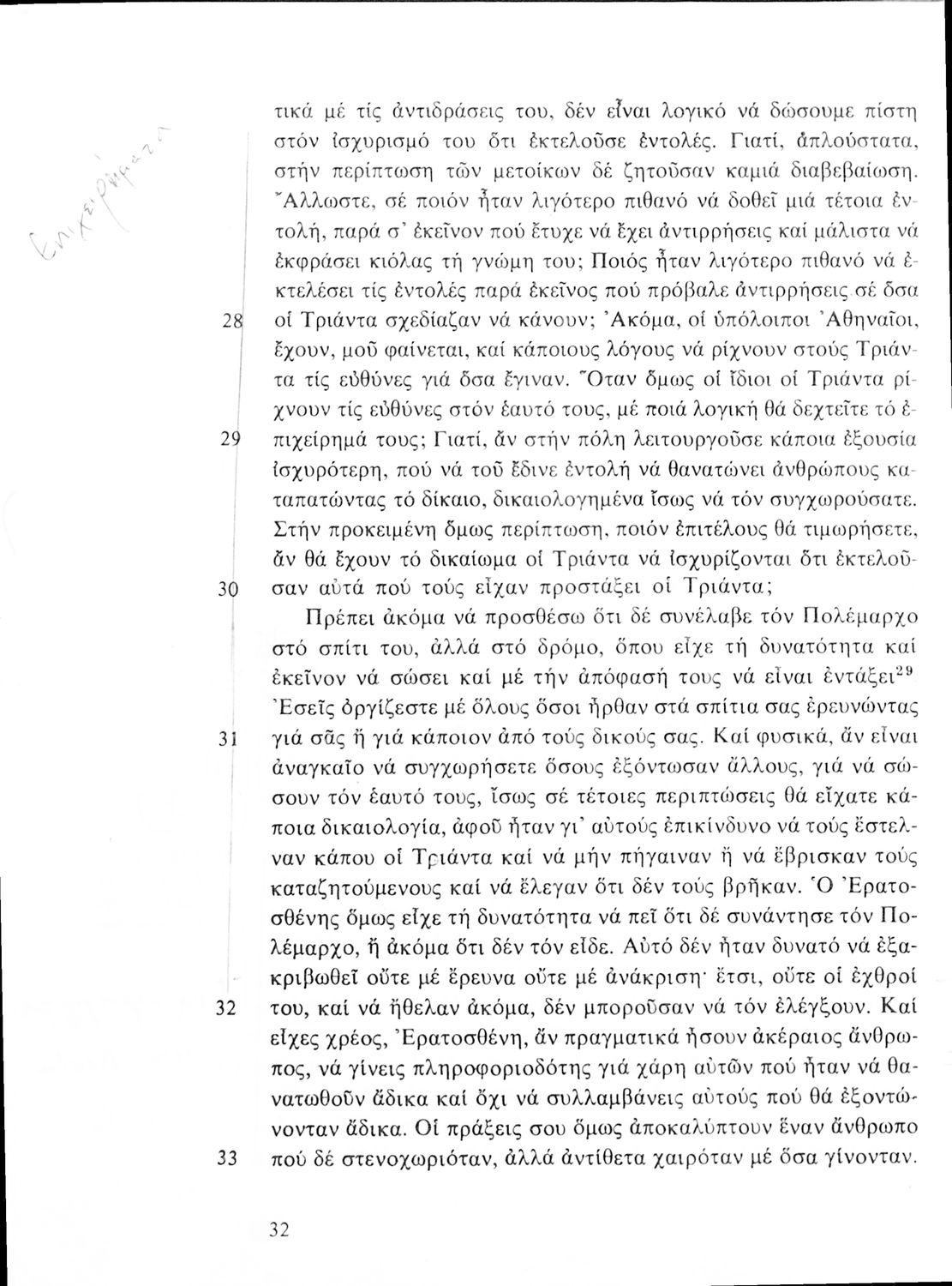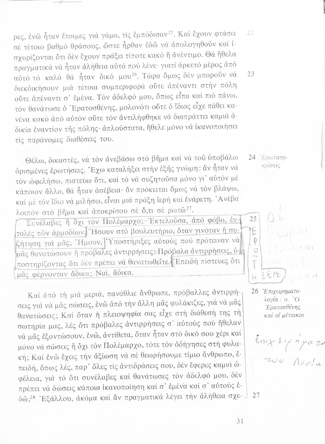 Σχολικό εγχειρίδιο Αρχαίων Ελληνικών για τη Β΄ Γυμνασίου που περιλαμβάνει Λόγους των Λυσία και Ισοκράτη και αποσπάσματα από τα Ελληνικά του Ξενοφώντα σε μετάφραση, εισαγωγή στη ζωή και το έργο τους και ερμηνευτικές σημειώσεις.