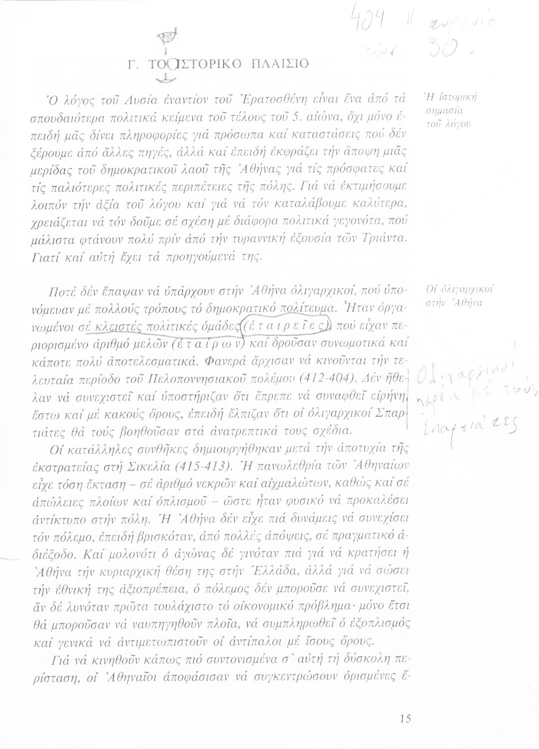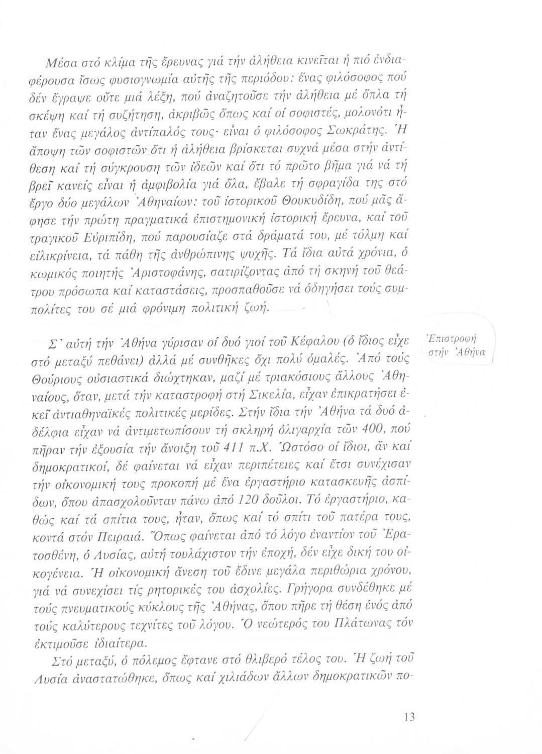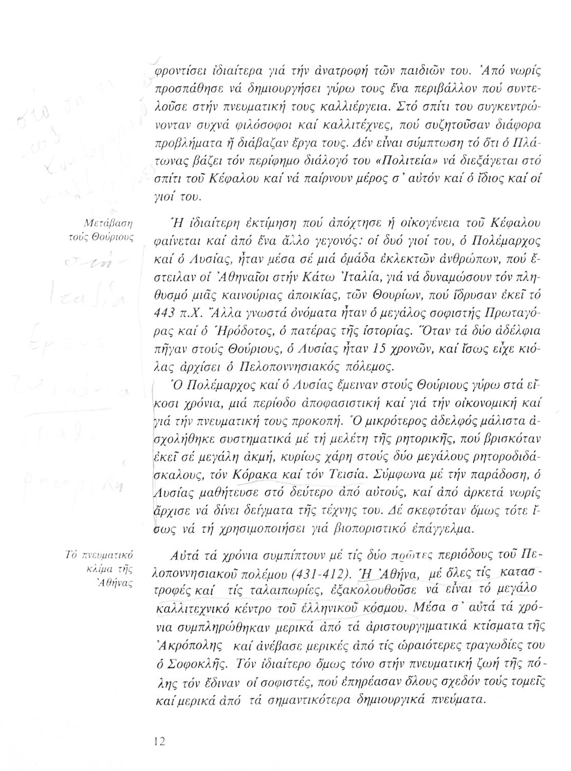 Σχολικό εγχειρίδιο Αρχαίων Ελληνικών για τη Β΄ Γυμνασίου που περιλαμβάνει Λόγους των Λυσία και Ισοκράτη και αποσπάσματα από τα Ελληνικά του Ξενοφώντα σε μετάφραση, εισαγωγή στη ζωή και το έργο τους και ερμηνευτικές σημειώσεις.