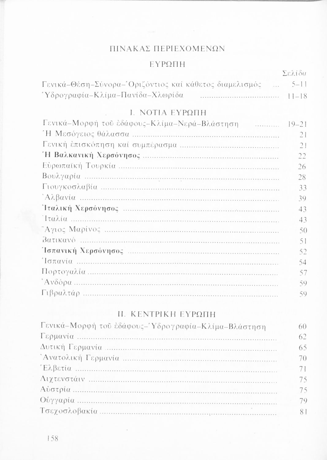 Σχολικό εγχειρίδιο Γεωγραφίας Β' Γυμνασίου που παρουσιάζει τις χώρες της Ευρώπης από γεωμορφολογική, πολιτική, πολιτισμική και οικονομική άποψη. Περιέχει και αναφορά στις οικονομικές σχέσεις της Ελλάδας με τα ευρωπαϊκά κράτη.