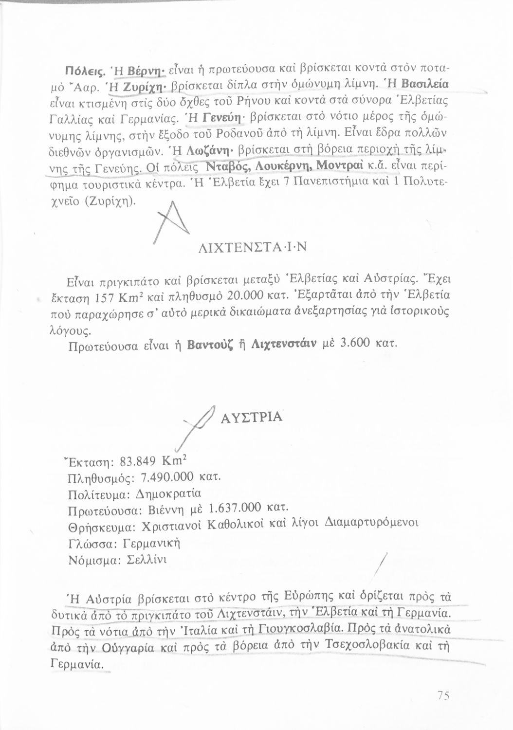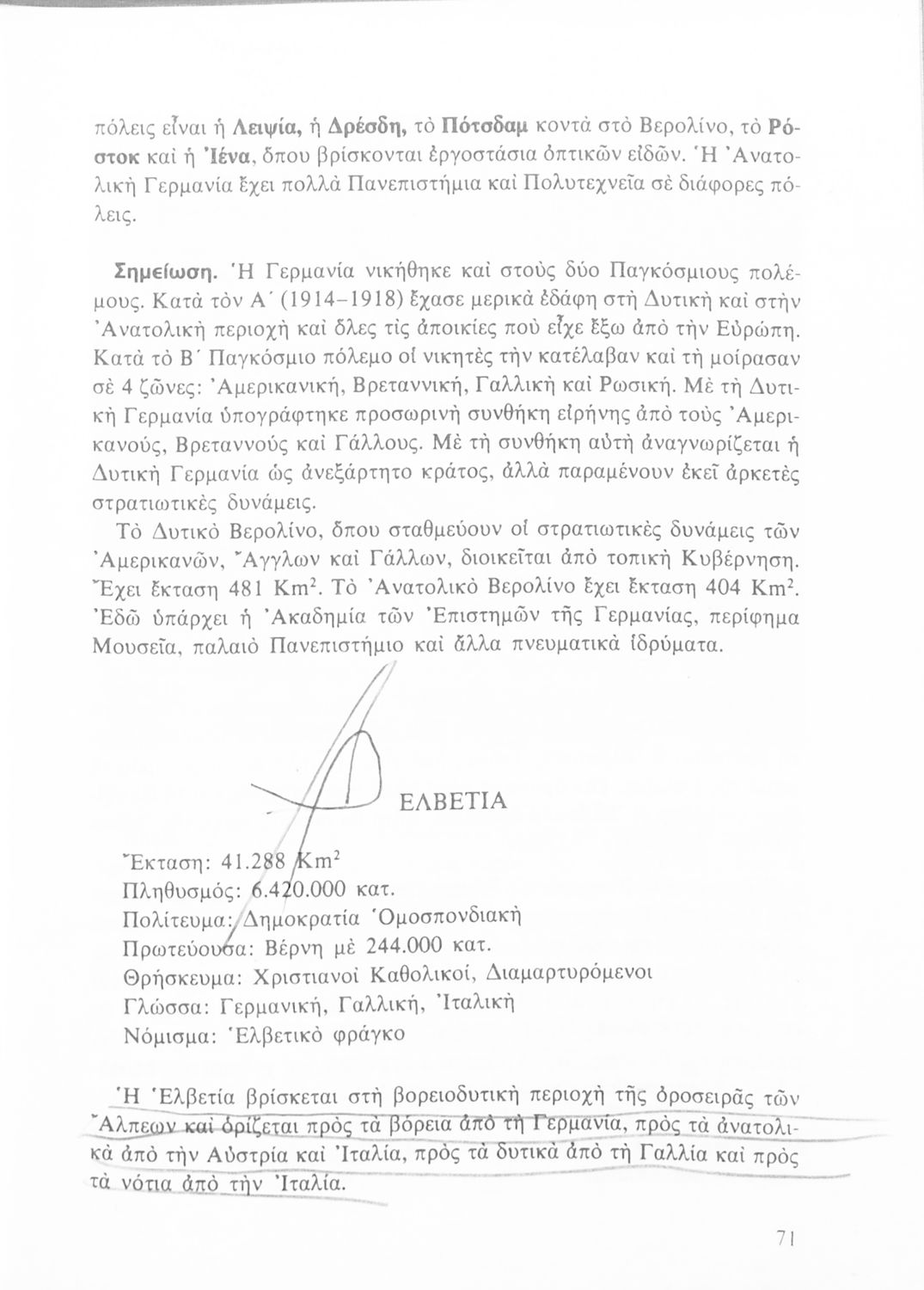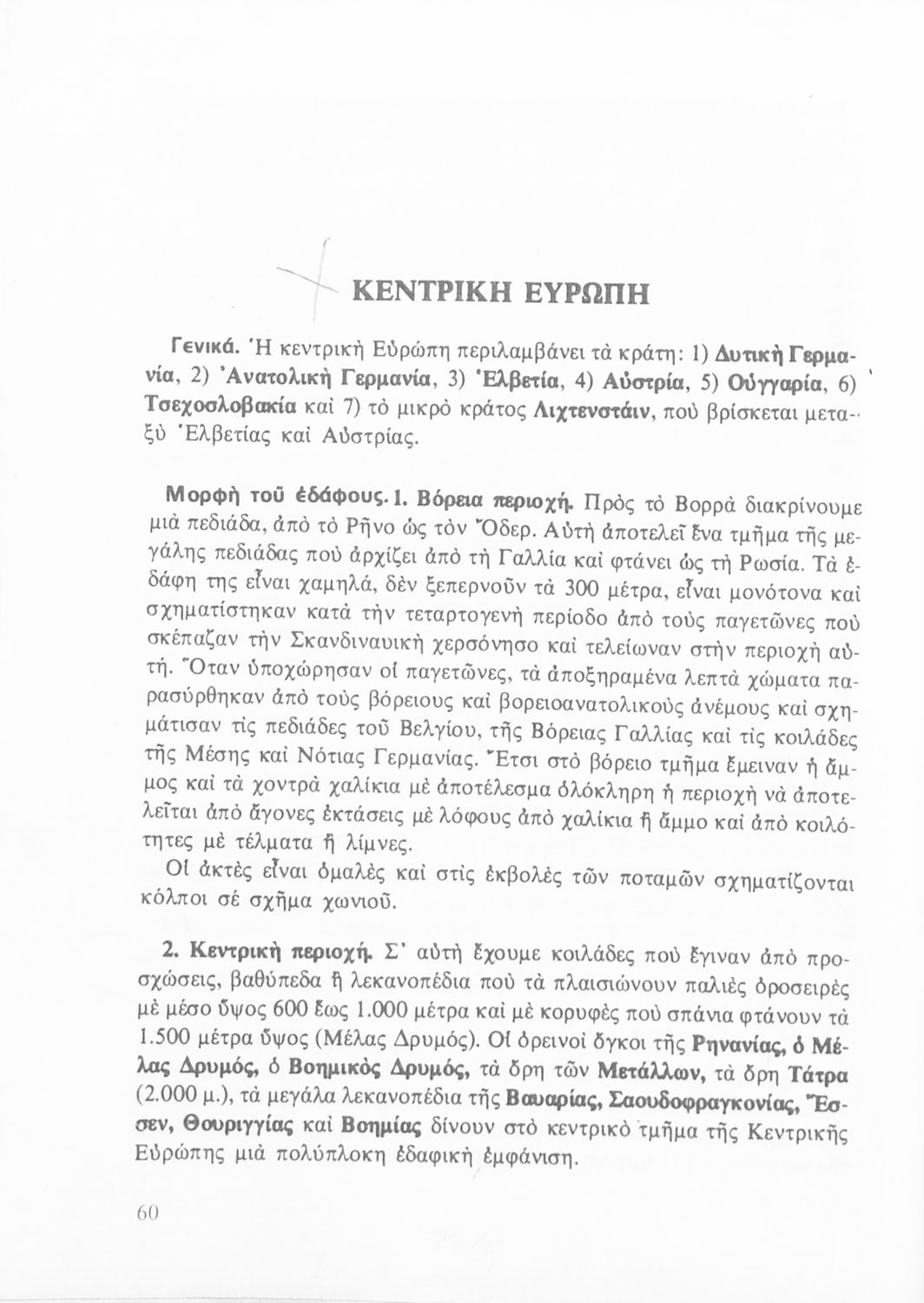 Σχολικό εγχειρίδιο Γεωγραφίας Β' Γυμνασίου που εξετάζει τις χώρες της Ευρώπης, πλην της Ελλάδας, από γεωμορφολογική, οικονομική και πολιτική άποψη.