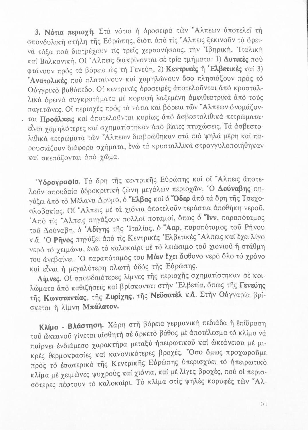 Σχολικό εγχειρίδιο Γεωγραφίας Β΄ Γυμνασίου που περιλαμβάνει εισαγωγή στη φυσική και πολιτισμική γεωγραφία της Ευρώπης και εξετάζει τις χώρες της από γεωμορφολογική, οικονομική και πολιτική άποψη.
