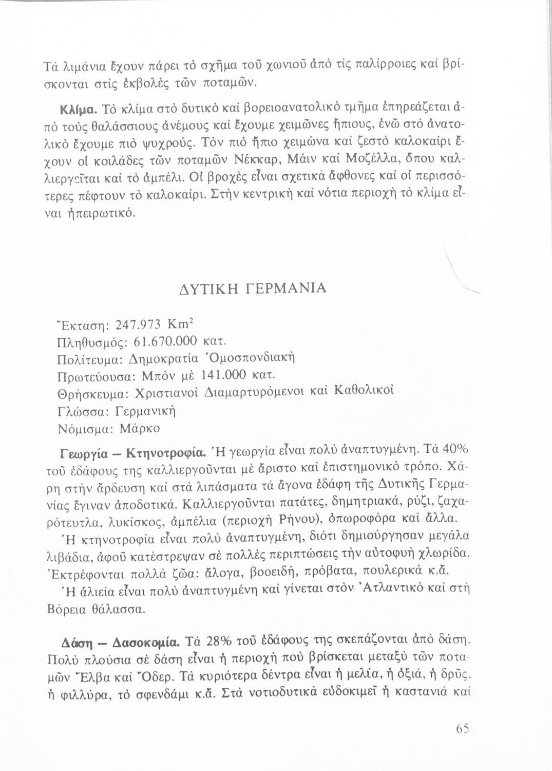 Σχολικό εγχειρίδιο Γεωγραφίας Β' Γυμνασίου που παρουσιάζει τις χώρες της Ευρώπης από γεωμορφολογική, πολιτική, πολιτισμική και οικονομική άποψη. Περιέχει και αναφορά στις οικονομικές σχέσεις της Ελλάδας με τα ευρωπαϊκά κράτη.