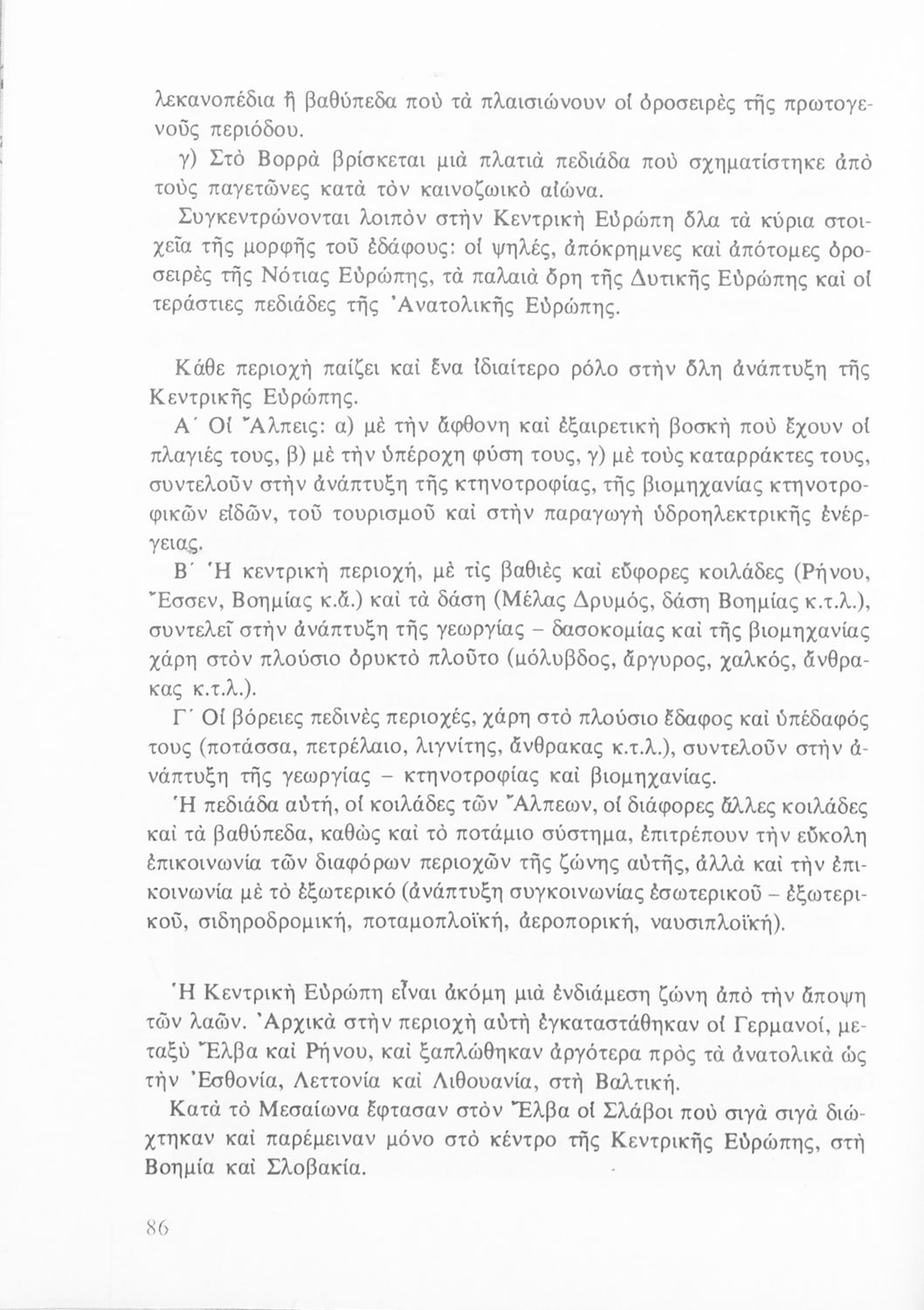 Σχολικό εγχειρίδιο Γεωγραφίας Β' Γυμνασίου που παρουσιάζει τις χώρες της Ευρώπης από γεωμορφολογική, πολιτική, πολιτισμική και οικονομική άποψη. Περιέχει και αναφορά στις οικονομικές σχέσεις της Ελλάδας με τα ευρωπαϊκά κράτη.