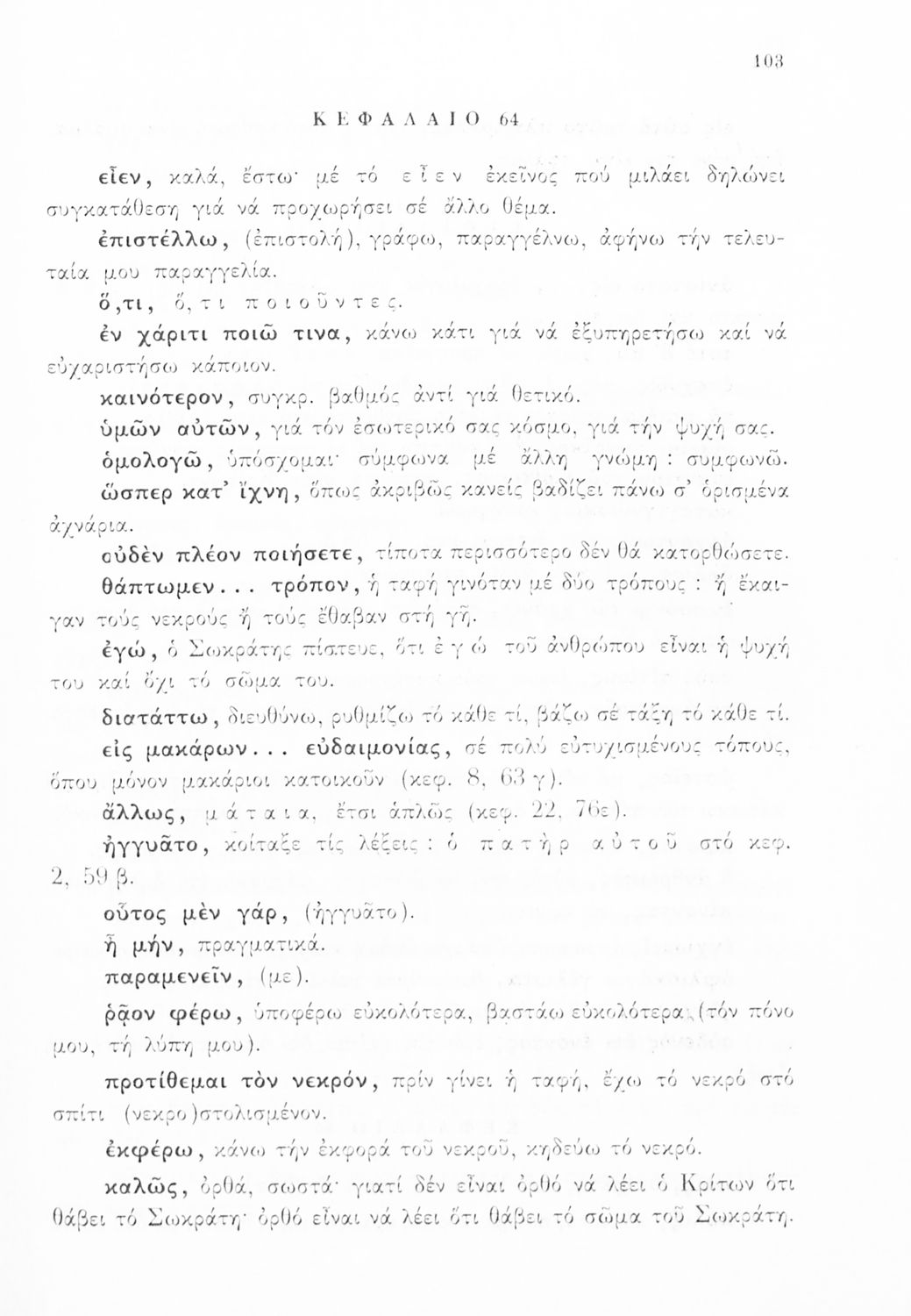 Σχολικό εγχειρίδιο Αρχαίων Ελληνικών Γ΄ Γυμνασίου που περιλαμβάνει το έργο του Πλάτωνα Κρίτων, εισαγωγή, μετάφραση και ερμηνευτικές παρατηρήσεις.
