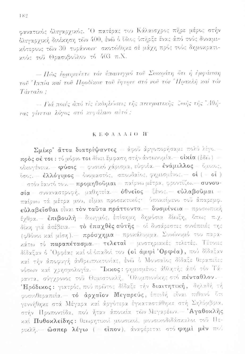 Σχολικό εγχειρίδιο Αρχαίων Ελληνικών για τη Γ΄ Λυκείου με κείμενο του Πλάτωνα. Το βιβλίο έχει εισαγωγές και ερμηνευτικά σχόλια.