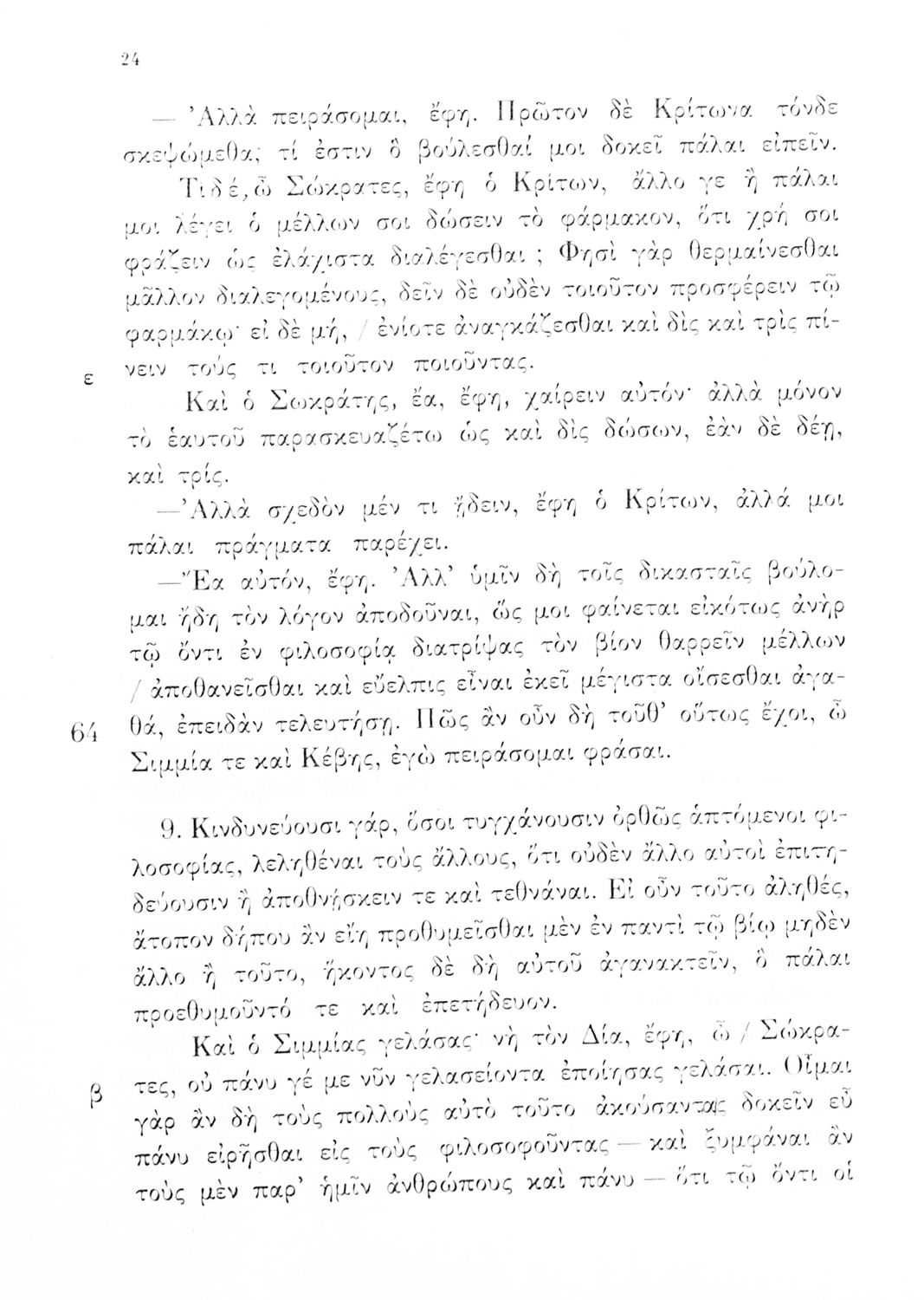 520 ## _aΣχολικό εγχειρίδιο Αρχαίων Ελληνικών της Γ΄ Λυκείου. Το βιβλίο ξεκινάει με μία εισαγωγή στη ζωή και το έργο του Πλάτωνα. Στην συνέχεια παρουσιάζει τα έργα του Πλάτωνα 'Φαίδων' και 'Πρωταγόρας'. Τα κείμενα συνοδεύονται από γλωσσικές και ερμηνευτικές σημειώσεις.