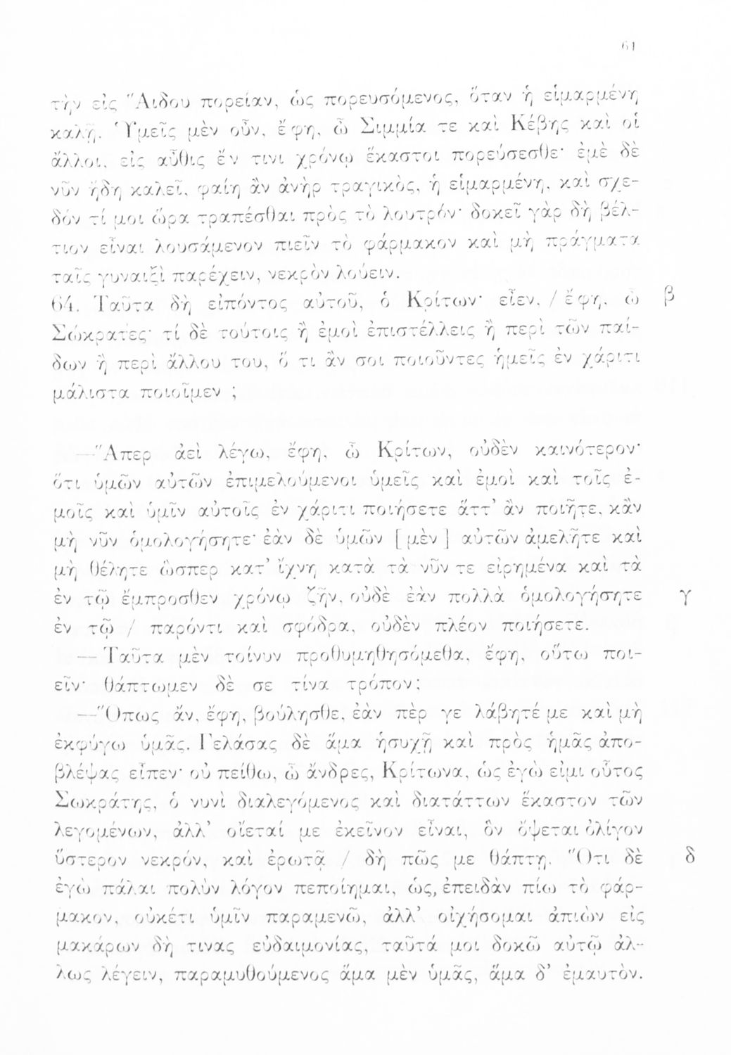 Σχολικό εγχειρίδιο Αρχαίων Ελληνικών για τη Γ΄ Λυκείου με κείμενο του Πλάτωνα. Το βιβλίο έχει εισαγωγές και ερμηνευτικά σχόλια.