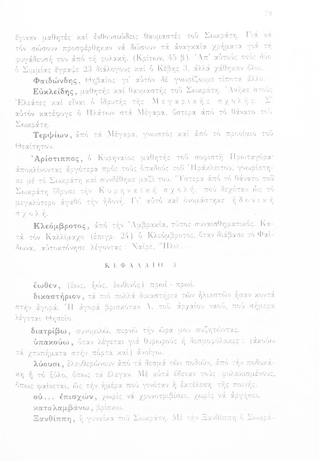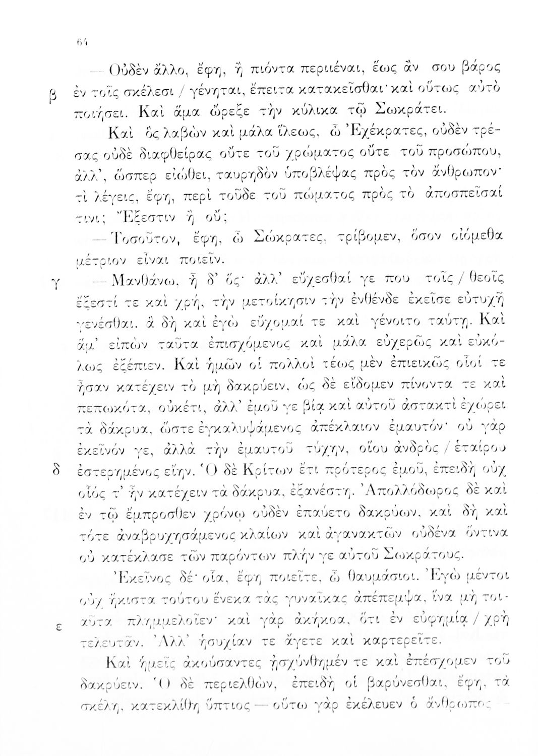 520 ## _aΣχολικό εγχειρίδιο Αρχαίων Ελληνικών της Γ΄ Λυκείου. Το βιβλίο ξεκινάει με μία εισαγωγή στη ζωή και το έργο του Πλάτωνα. Στην συνέχεια παρουσιάζει τα έργα του Πλάτωνα 'Φαίδων' και 'Πρωταγόρας'. Τα κείμενα συνοδεύονται από γλωσσικές και ερμηνευτικές σημειώσεις.