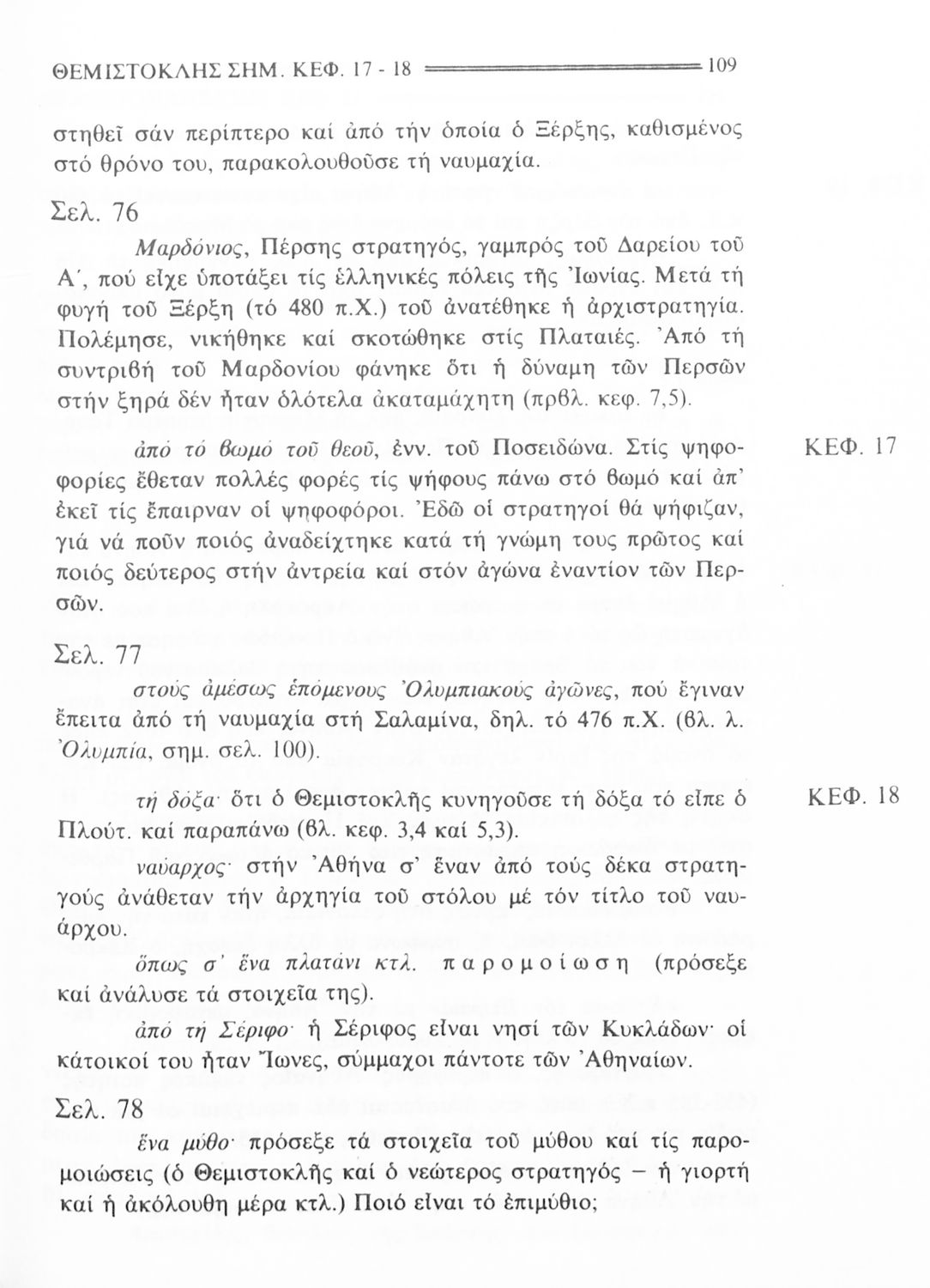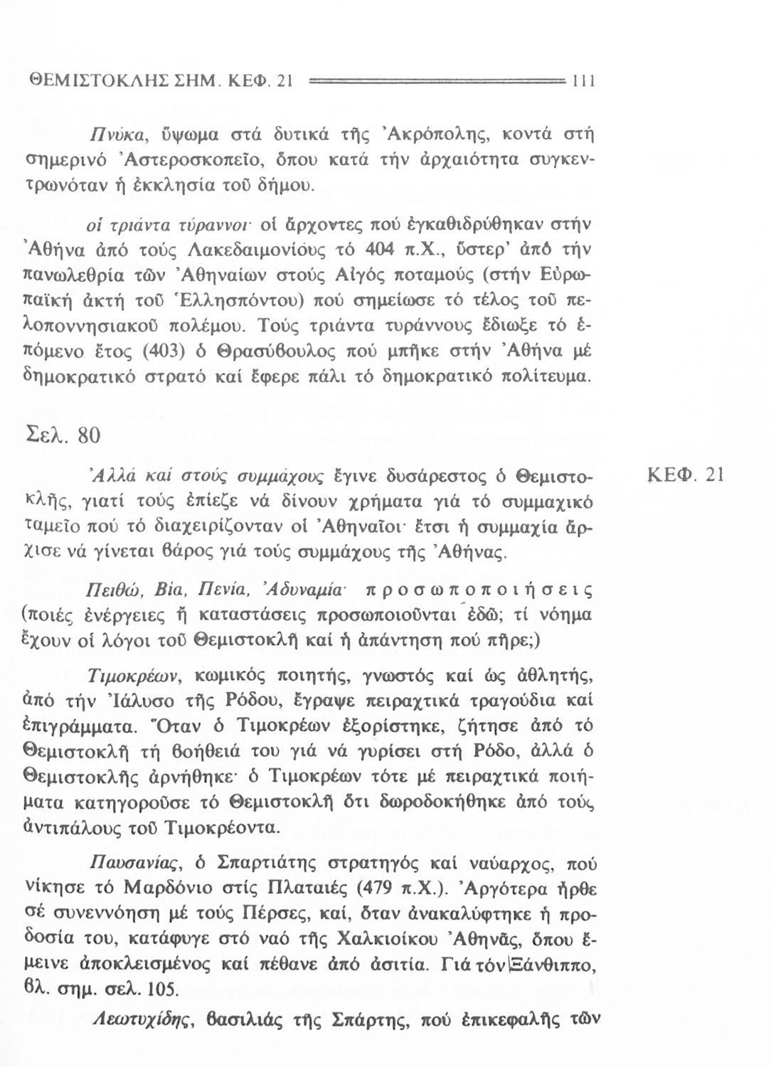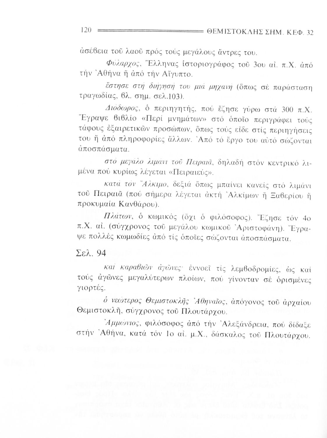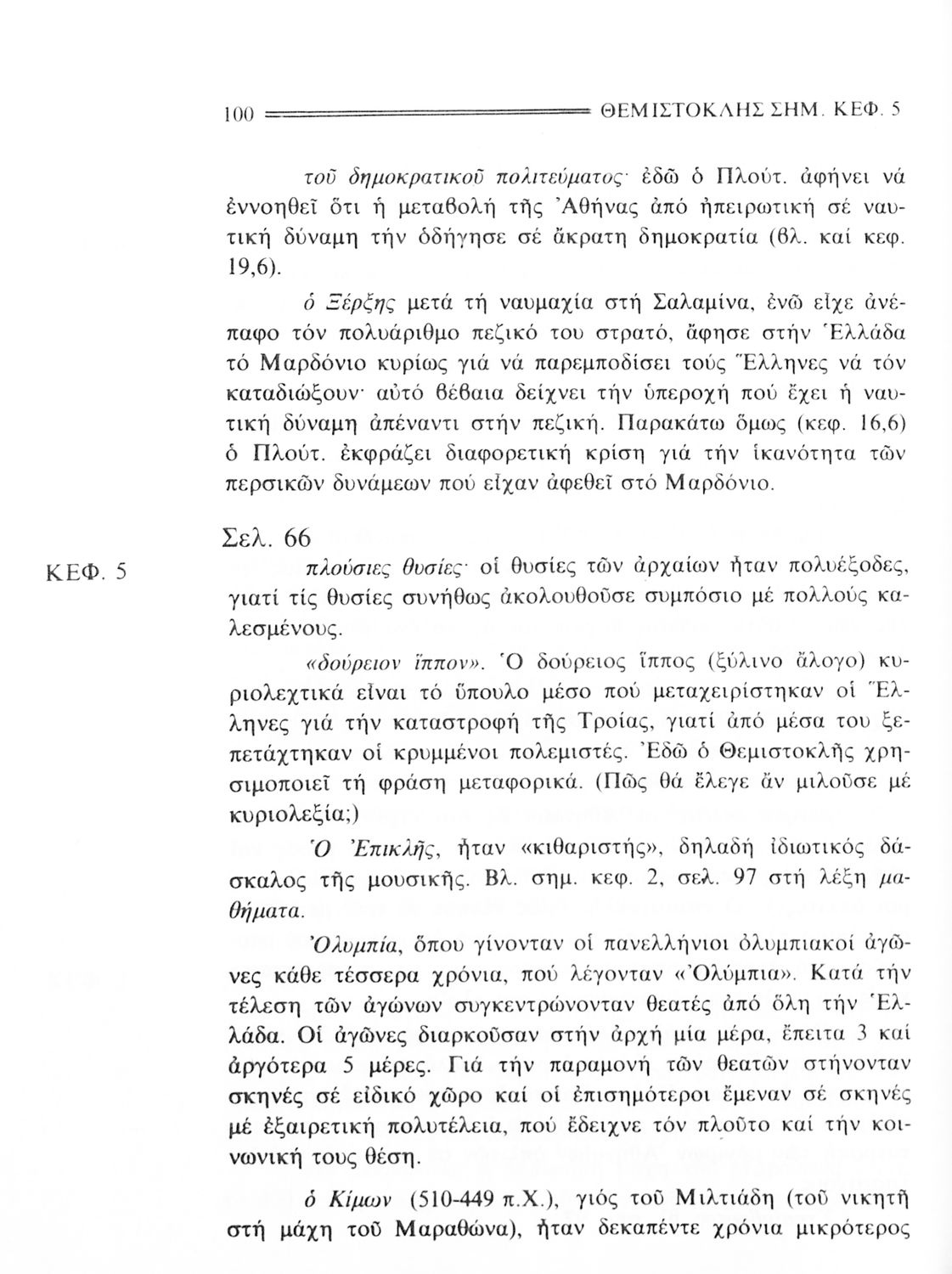 Σχολικό εγχειρίδιο Αρχαίων Ελληνικών Β΄ Γυμνασίου που περιέχει μετάφραση του έργο του Πλούταρχου Θεμιστοκλής και Περικλής, εισαγωγή και ερμηνευτικά σχόλια.