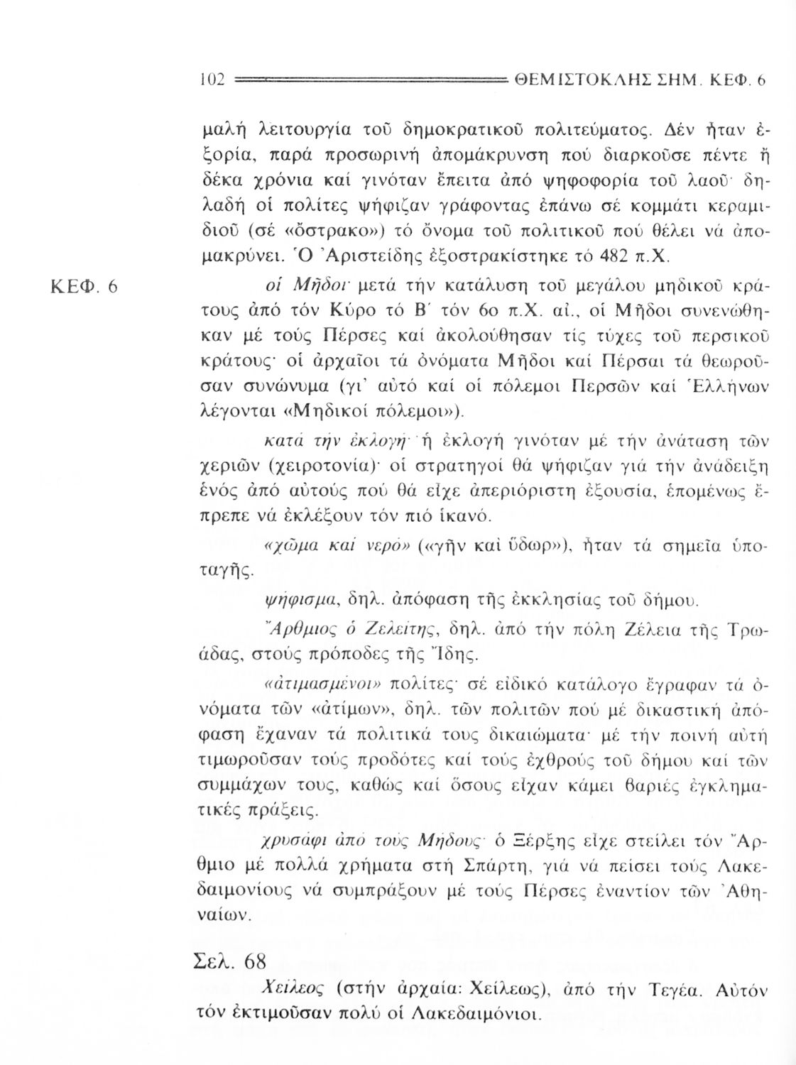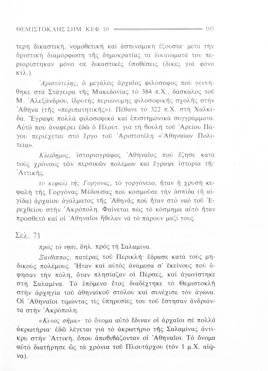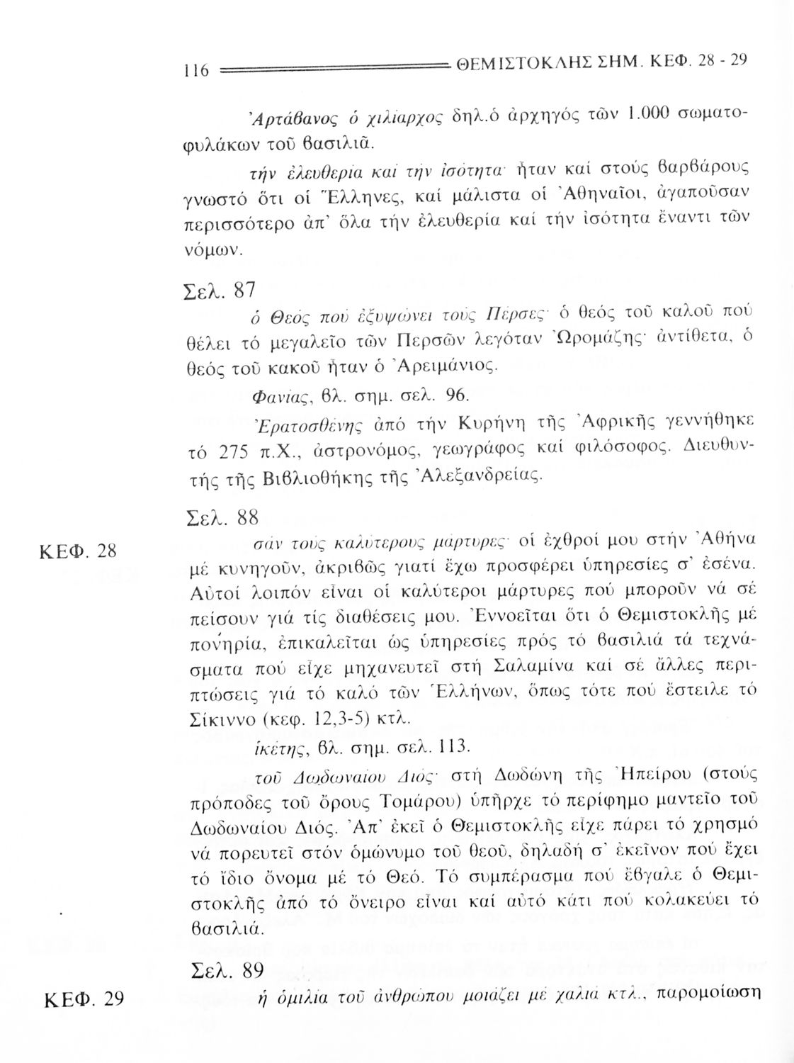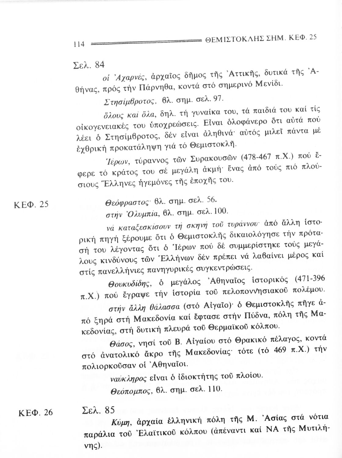 Σχολικό εγχειρίδιο Αρχαίων Ελληνικών Β΄ Γυμνασίου που περιέχει μετάφραση του έργο του Πλούταρχου Θεμιστοκλής και Περικλής, εισαγωγή και ερμηνευτικά σχόλια.