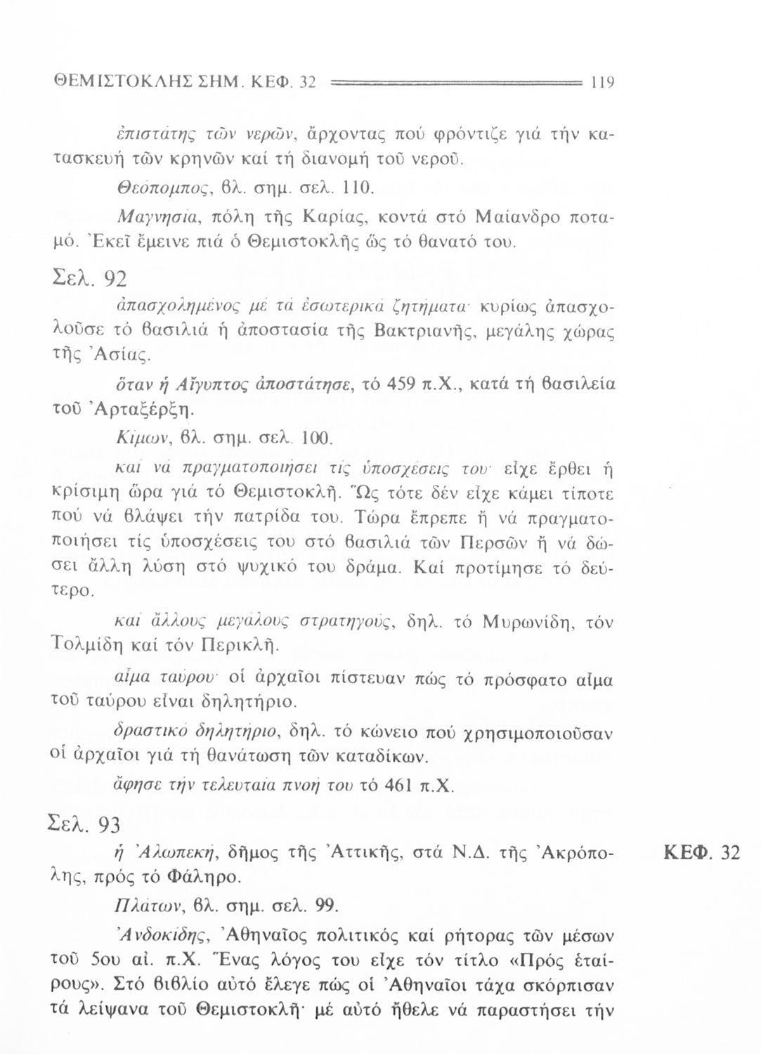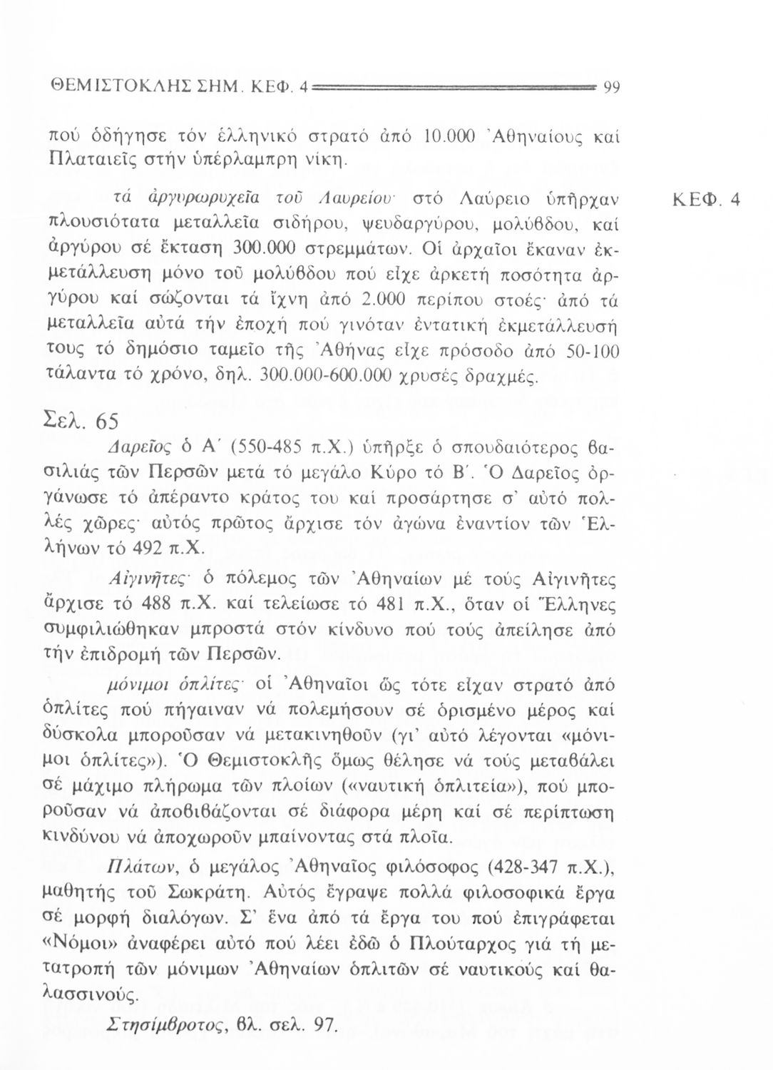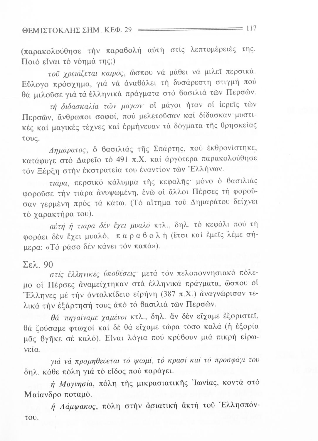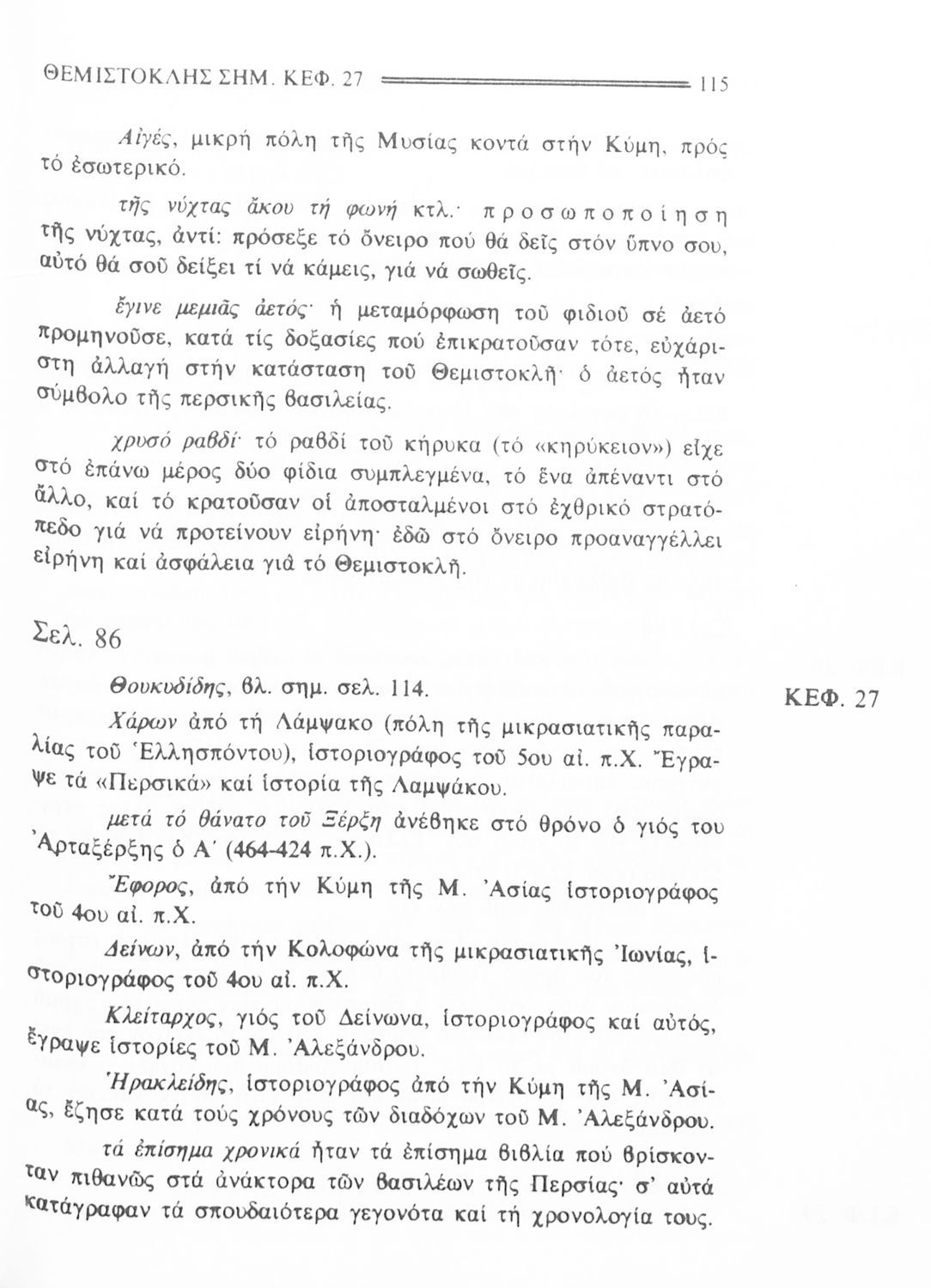 Σχολικό εγχειρίδιο Αρχαίων Ελληνικών Β΄ Γυμνασίου που περιέχει μετάφραση του έργο του Πλούταρχου Θεμιστοκλής και Περικλής, εισαγωγή και ερμηνευτικά σχόλια.