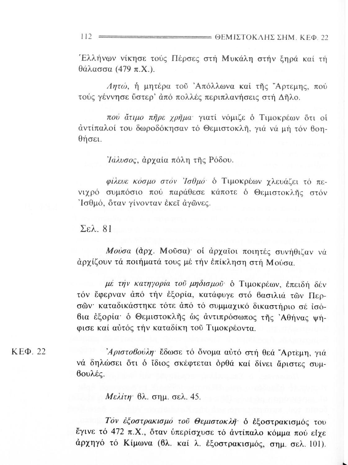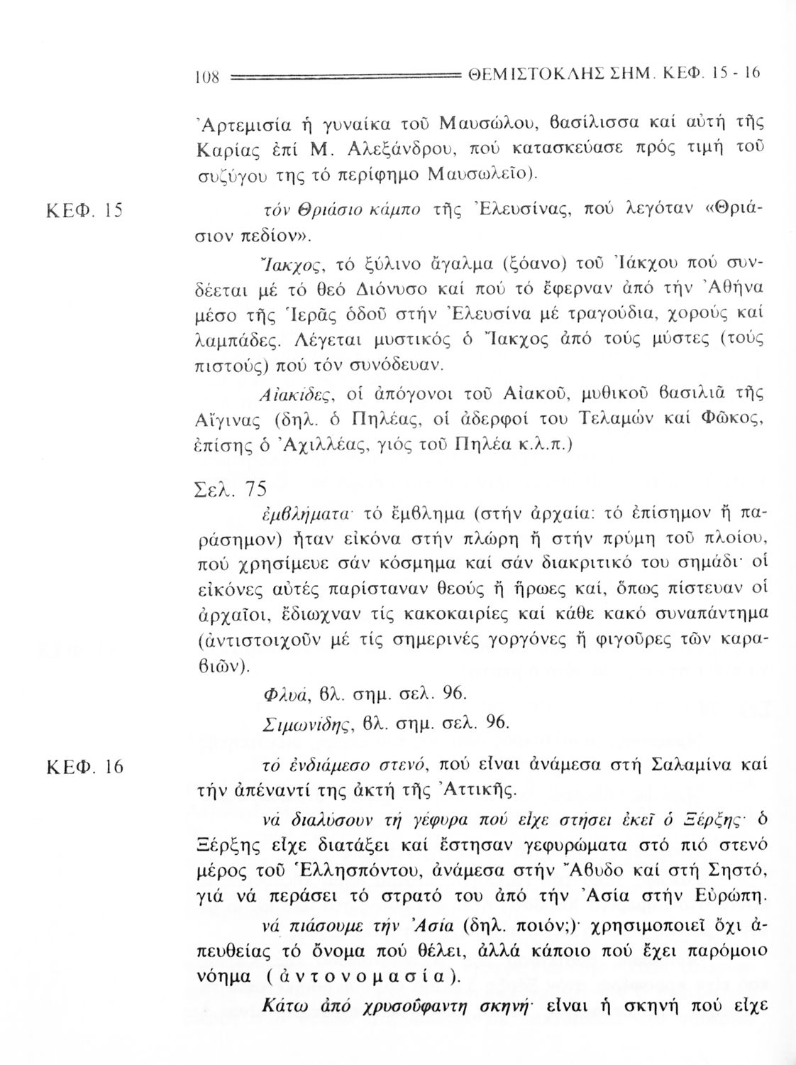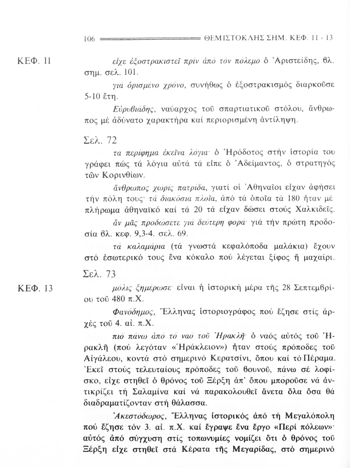 Σχολικό εγχειρίδιο Αρχαίων Ελληνικών Α΄ Γυμνασίου που περιλαμβάνει το έργο του Πλούταρχου Θεμιστοκλής, εισαγωγή στη ζωή και το έργο του, ερμηνευτικά και πραγματολογικά σχόλια, και αλφαβητικό πίνακα των ...