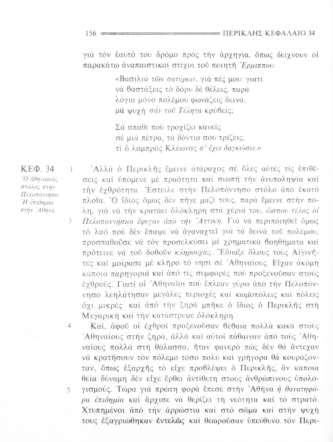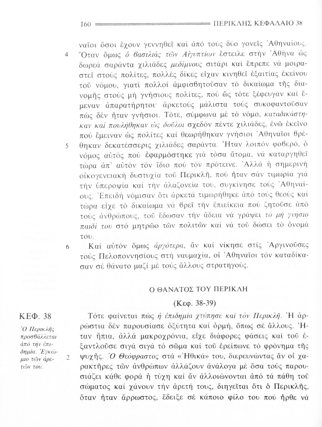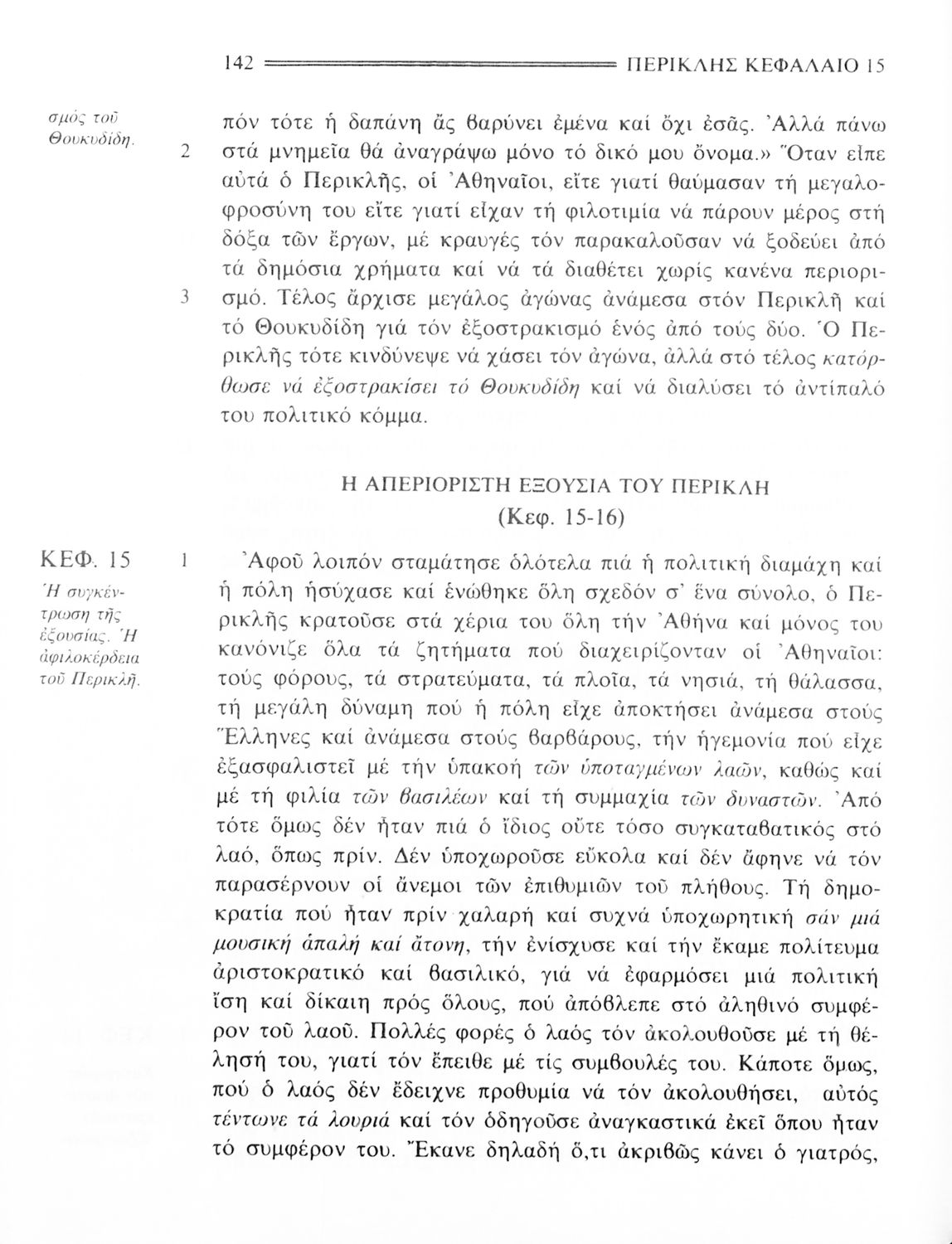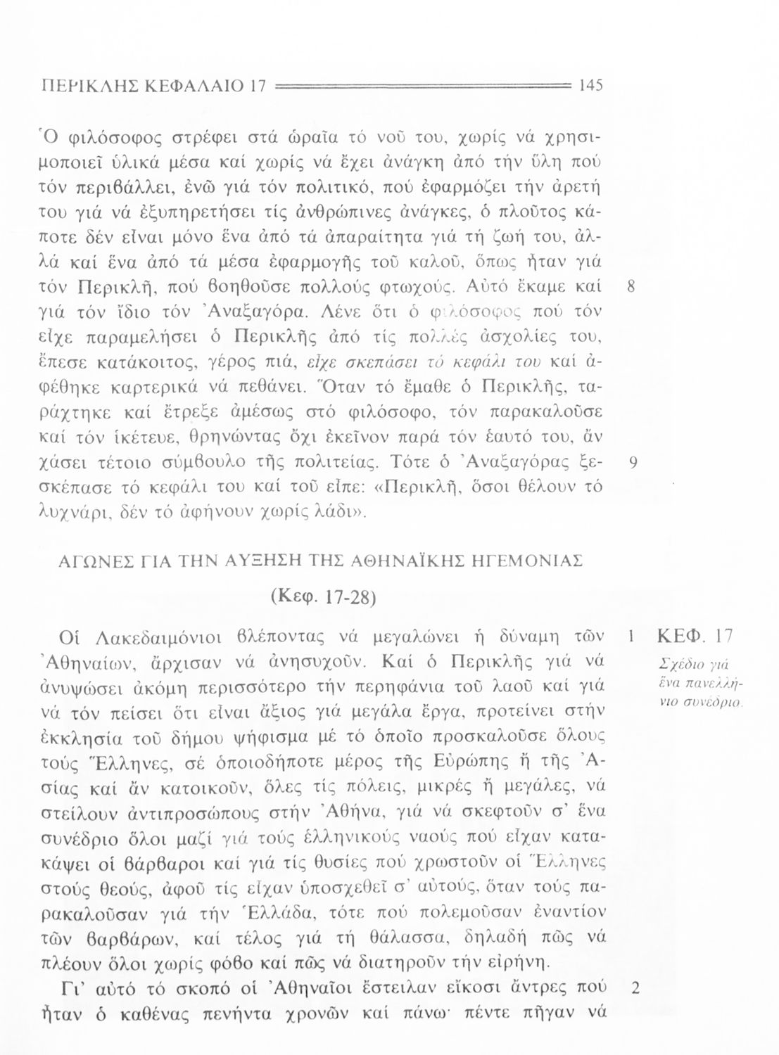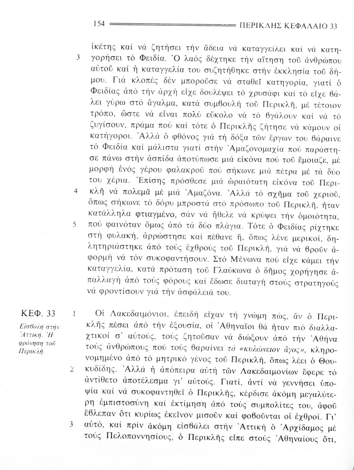Σχολικό εγχειρίδιο Αρχαίων Ελληνικών Β΄ Γυμνασίου που περιέχει μετάφραση του έργο του Πλούταρχου Θεμιστοκλής και Περικλής, εισαγωγή και ερμηνευτικά σχόλια.
