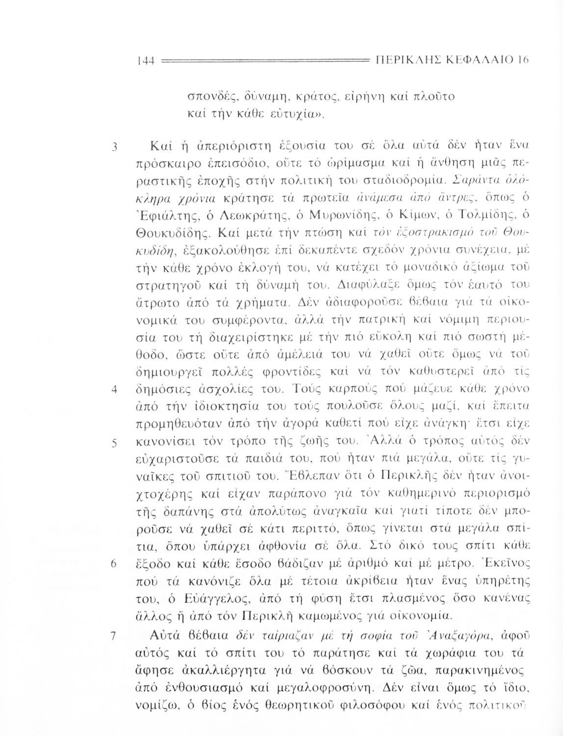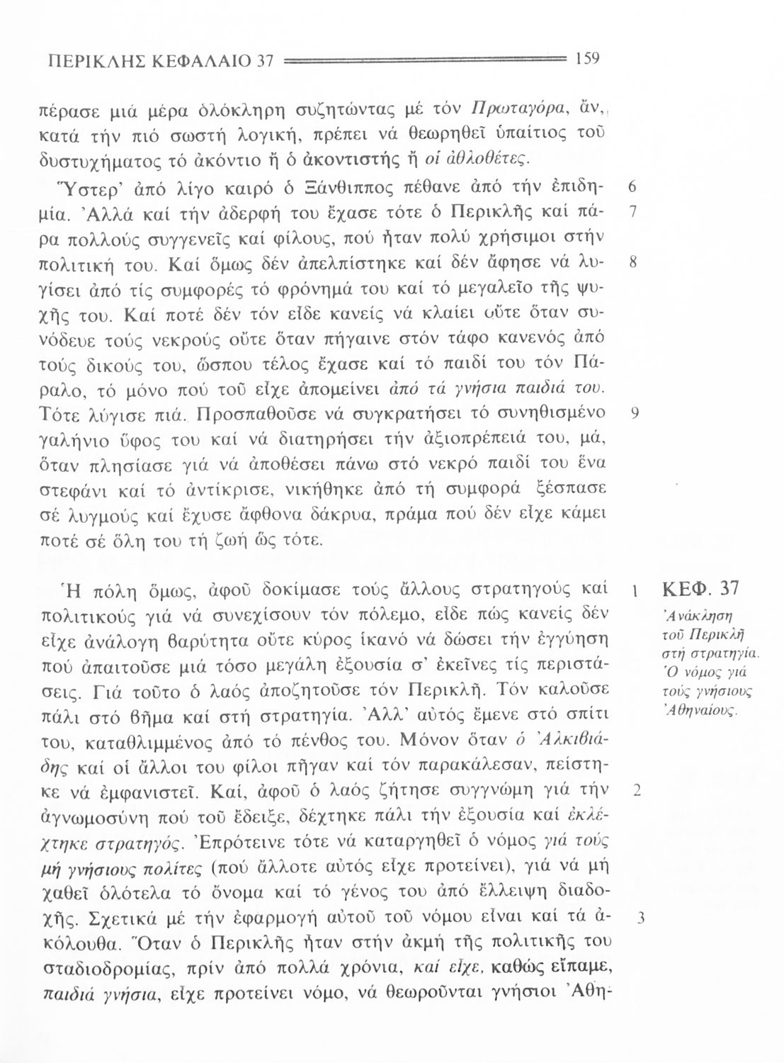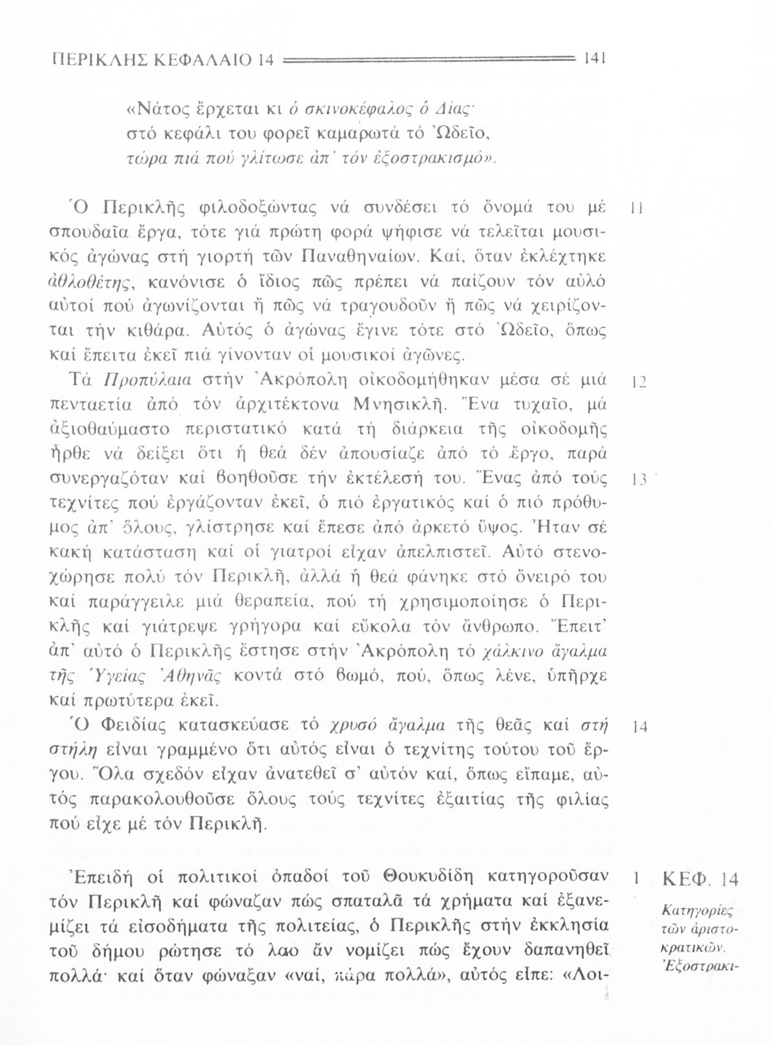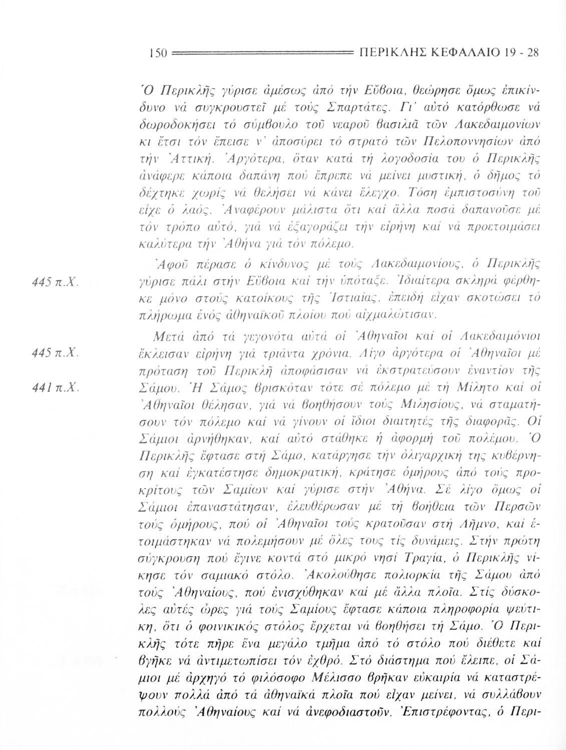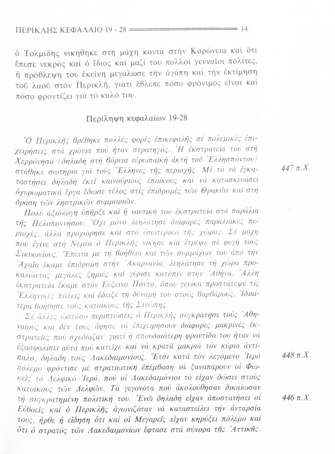 Σχολικό εγχειρίδιο Αρχαίων Ελληνικών Β΄ Γυμνασίου που περιέχει μετάφραση του έργο του Πλούταρχου Θεμιστοκλής και Περικλής, εισαγωγή και ερμηνευτικά σχόλια.