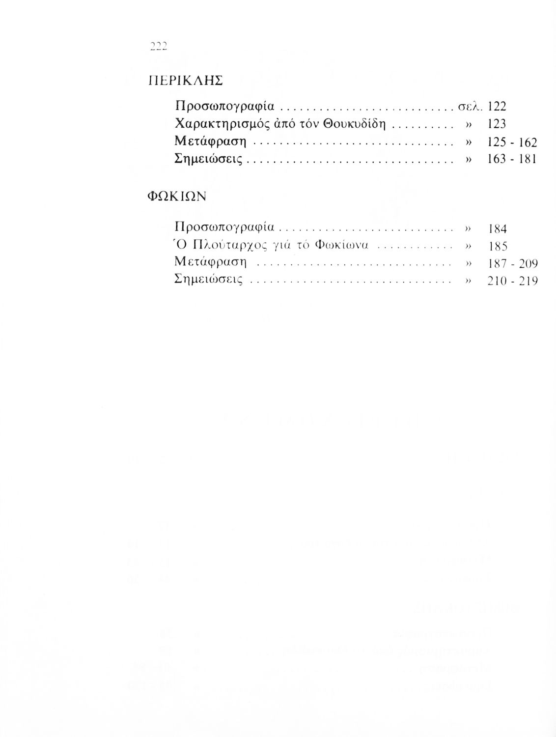 Σχολικό εγχειρίδιο Αρχαίων Ελληνικών της Β΄ Γυμνασίου το οποίο περιέχει το έργο του Πλούταρχου 'Βίοι' όπου παρουσιάζει τους βίους επιφανών ανδρών της αρχαιότητας του Σόλωνα, του Θεμιστοκλή, του Περικλή και του Φωκίωνα. Τα κείμενα συνοδεύονται από γλωσσικές και ερμηνευτικές σημειώσεις.