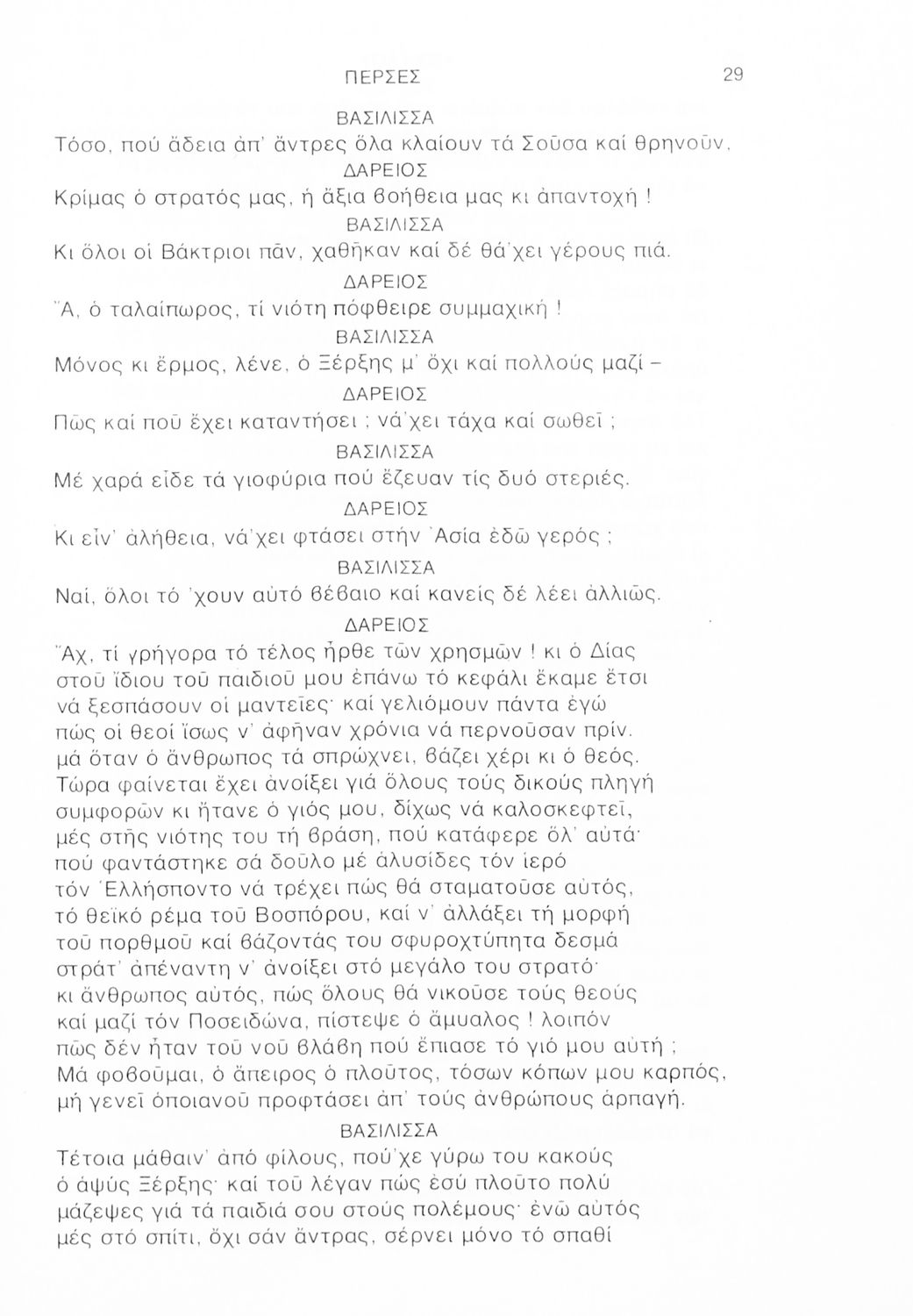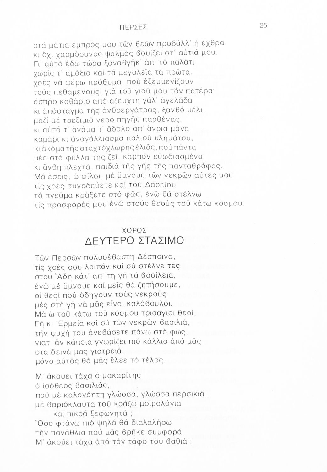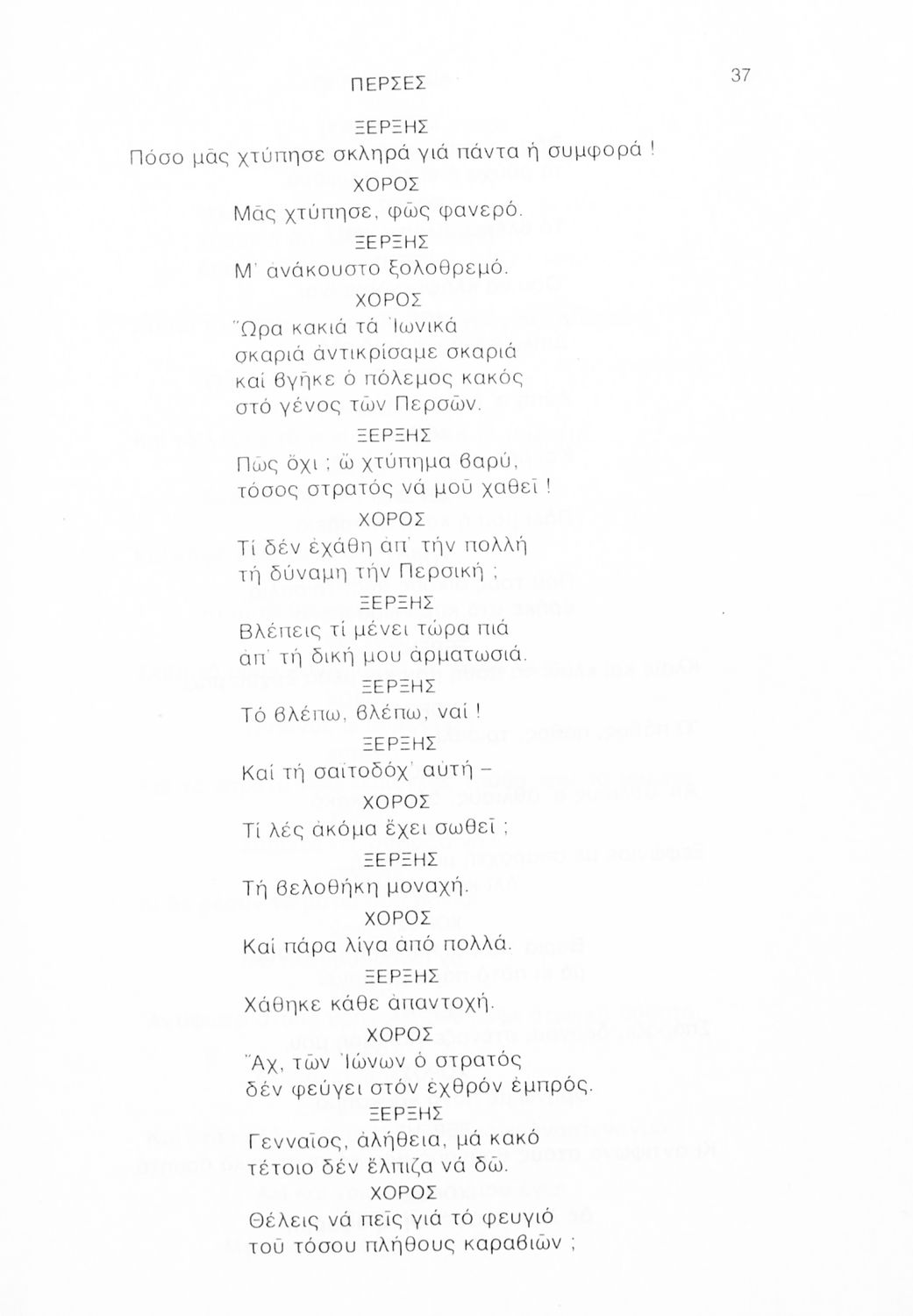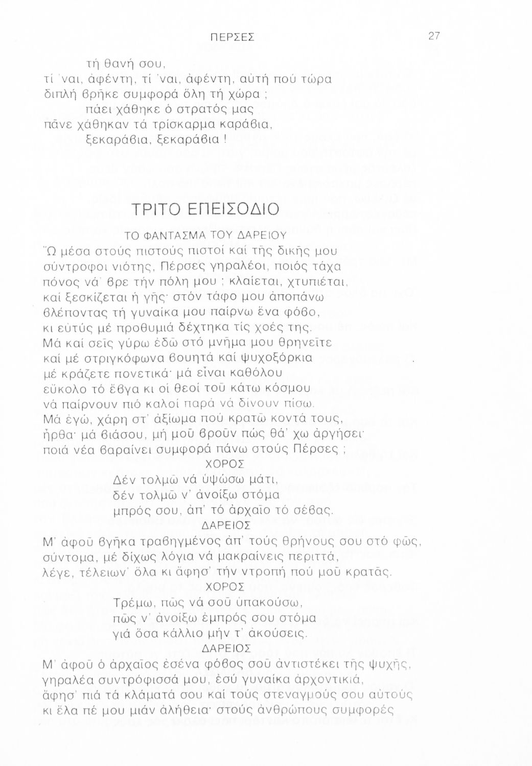 Σχολικό εγχειρίδιο Αρχαίων Ελληνικών Γ΄ Λυκείου που περιλαμβάνει αποσπάσματα από την Τραγωδία του Αισχύλου Πέρσες σε μετάφραση Ι. Ν. Γρυπάρη, εισαγωγικό σημείωμα σχετικά με την αρχαία ελληνική κωμωδία του Ι. Κ. Κακριδή και αποσπάσματα από την κωμωδία του Αριστοφάνη Βάτραχοι σε μετάφραση και ερμηνευτικά σχόλια του Θρ. Σταύρου.