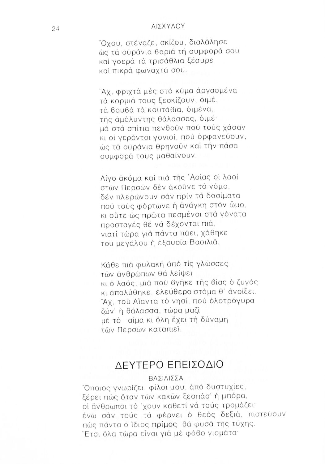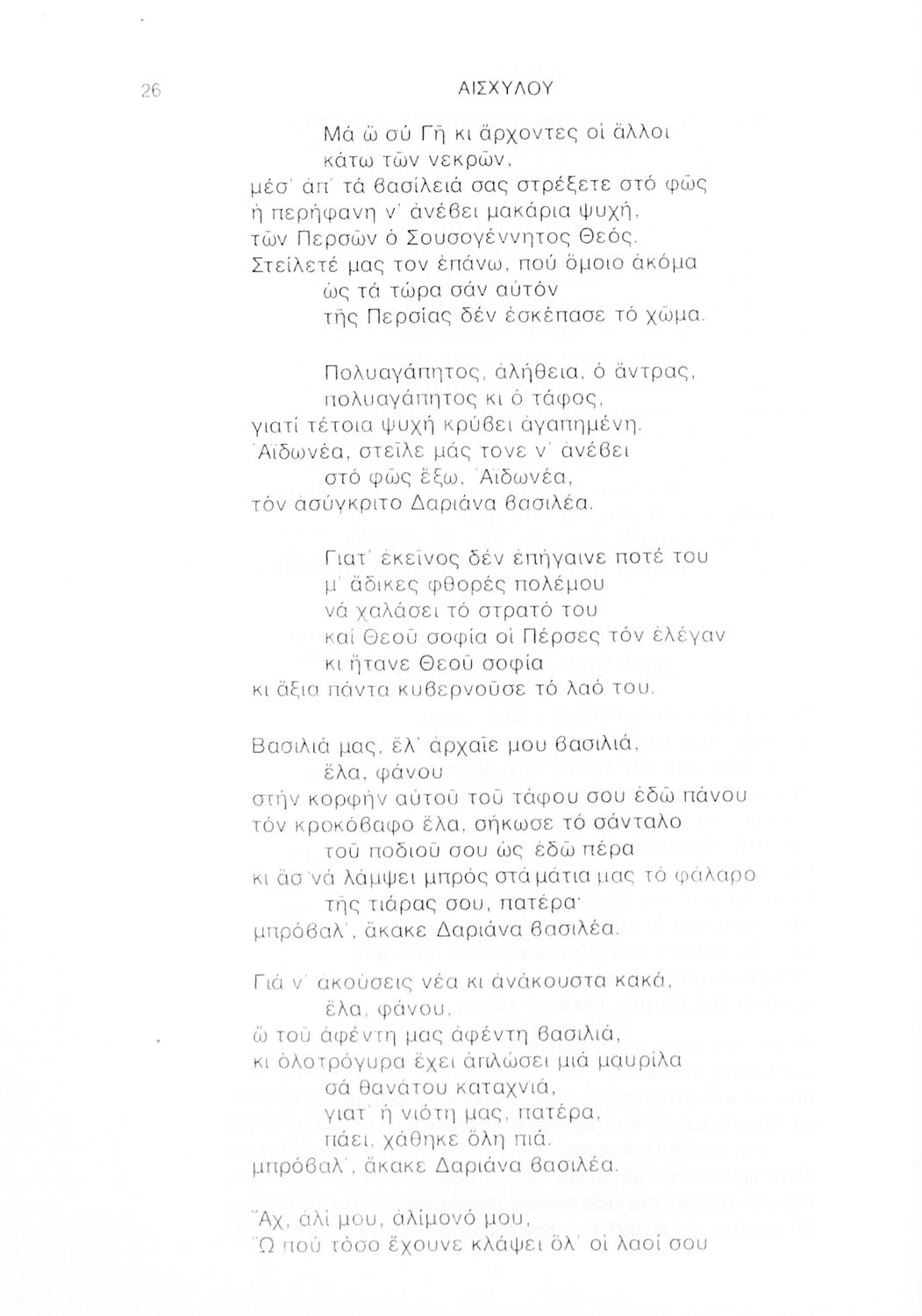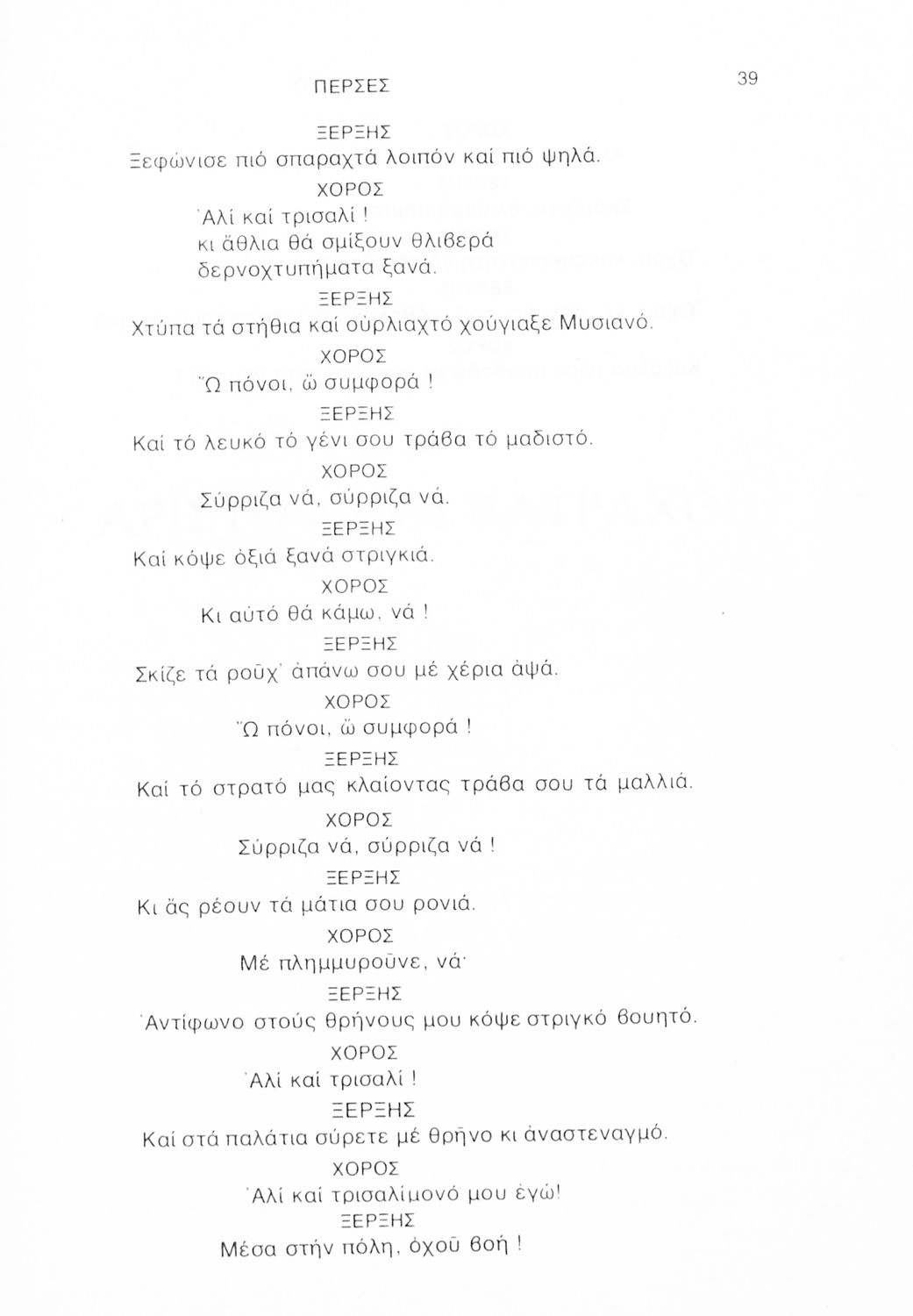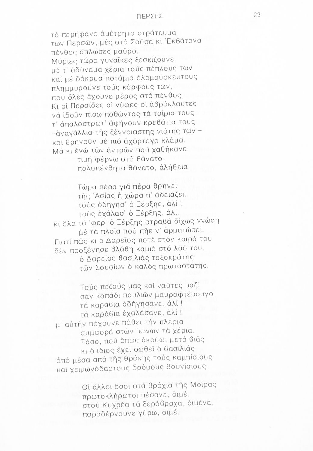 Σχολικό εγχειρίδιο Αρχαίων Ελληνικών Γ΄ Λυκείου που περιλαμβάνει αποσπάσματα από την Τραγωδία του Αισχύλου Πέρσες σε μετάφραση Ι. Ν. Γρυπάρη, εισαγωγικό σημείωμα σχετικά με την αρχαία ελληνική κωμωδία του Ι. Κ. Κακριδή και αποσπάσματα από την κωμωδία του Αριστοφάνη Βάτραχοι σε μετάφραση και ερμηνευτικά σχόλια του Θρ. Σταύρου.