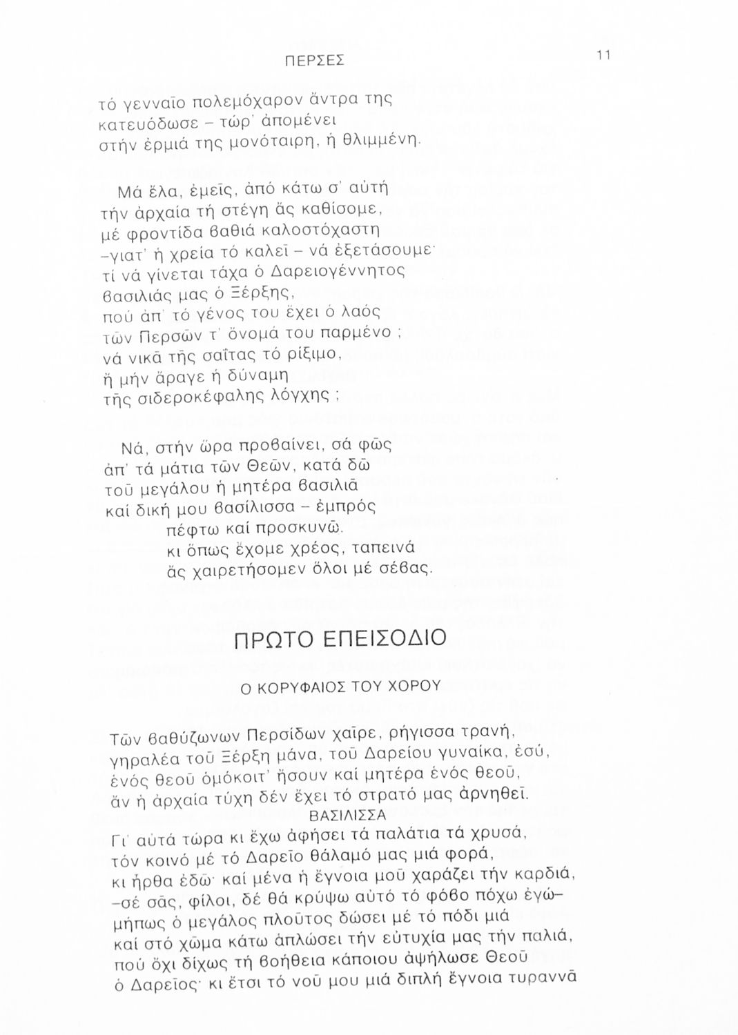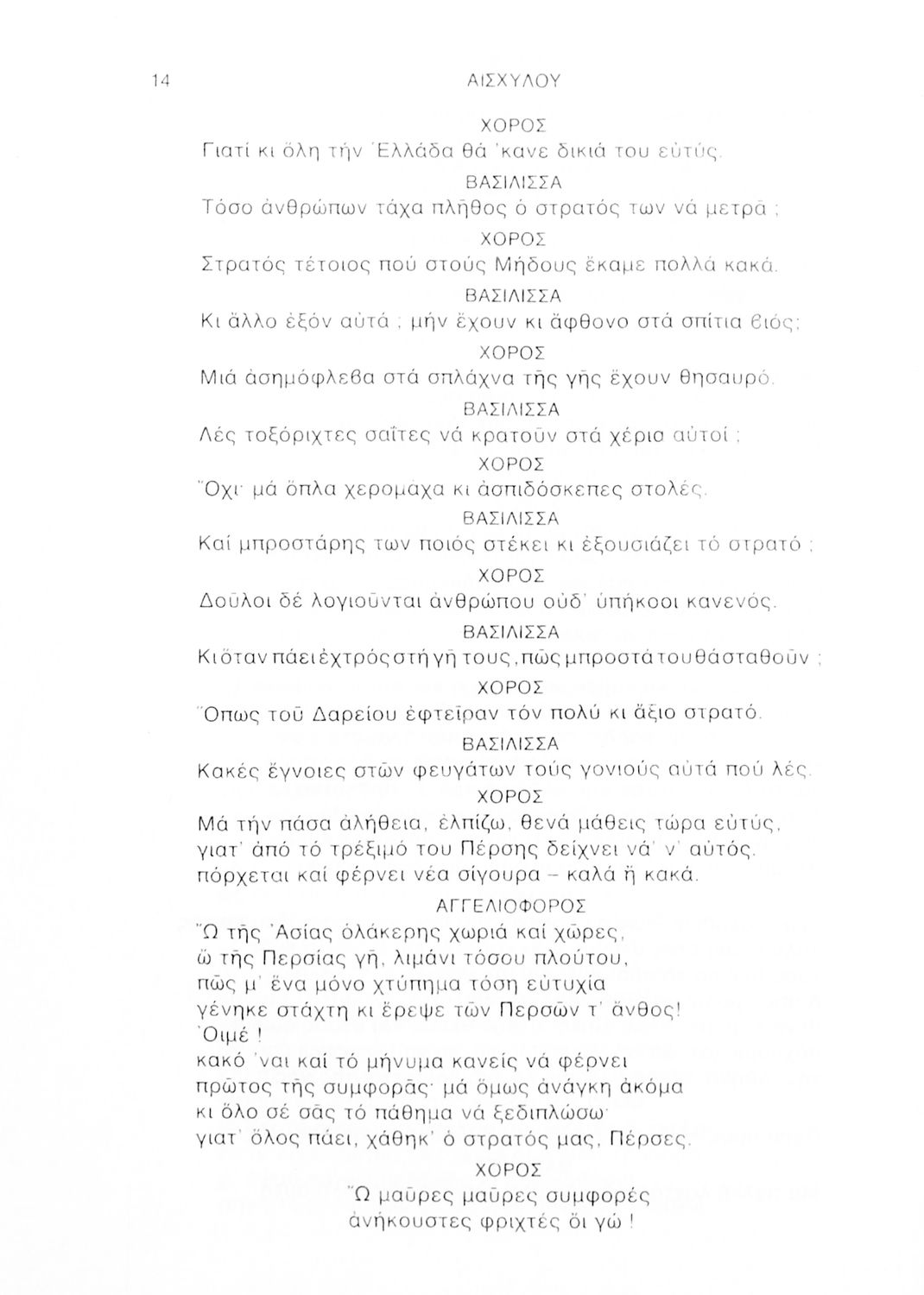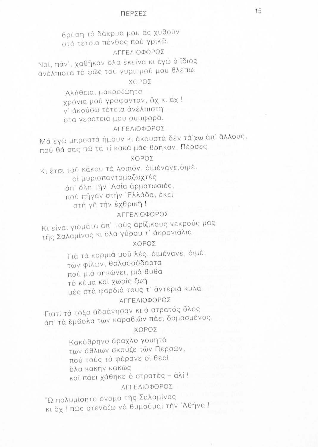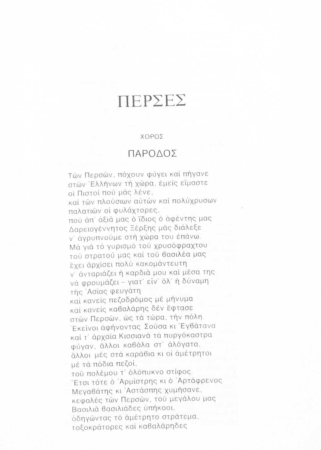 Σχολικό εγχειρίδιο Αρχαίων Ελληνικών Γ΄ Λυκείου που περιλαμβάνει αποσπάσματα από την Τραγωδία του Αισχύλου Πέρσες σε μετάφραση Ι. Ν. Γρυπάρη, εισαγωγικό σημείωμα σχετικά με την αρχαία ελληνική κωμωδία του Ι. Κ. Κακριδή και αποσπάσματα από την κωμωδία του Αριστοφάνη Βάτραχοι σε μετάφραση και ερμηνευτικά σχόλια του Θρ. Σταύρου.