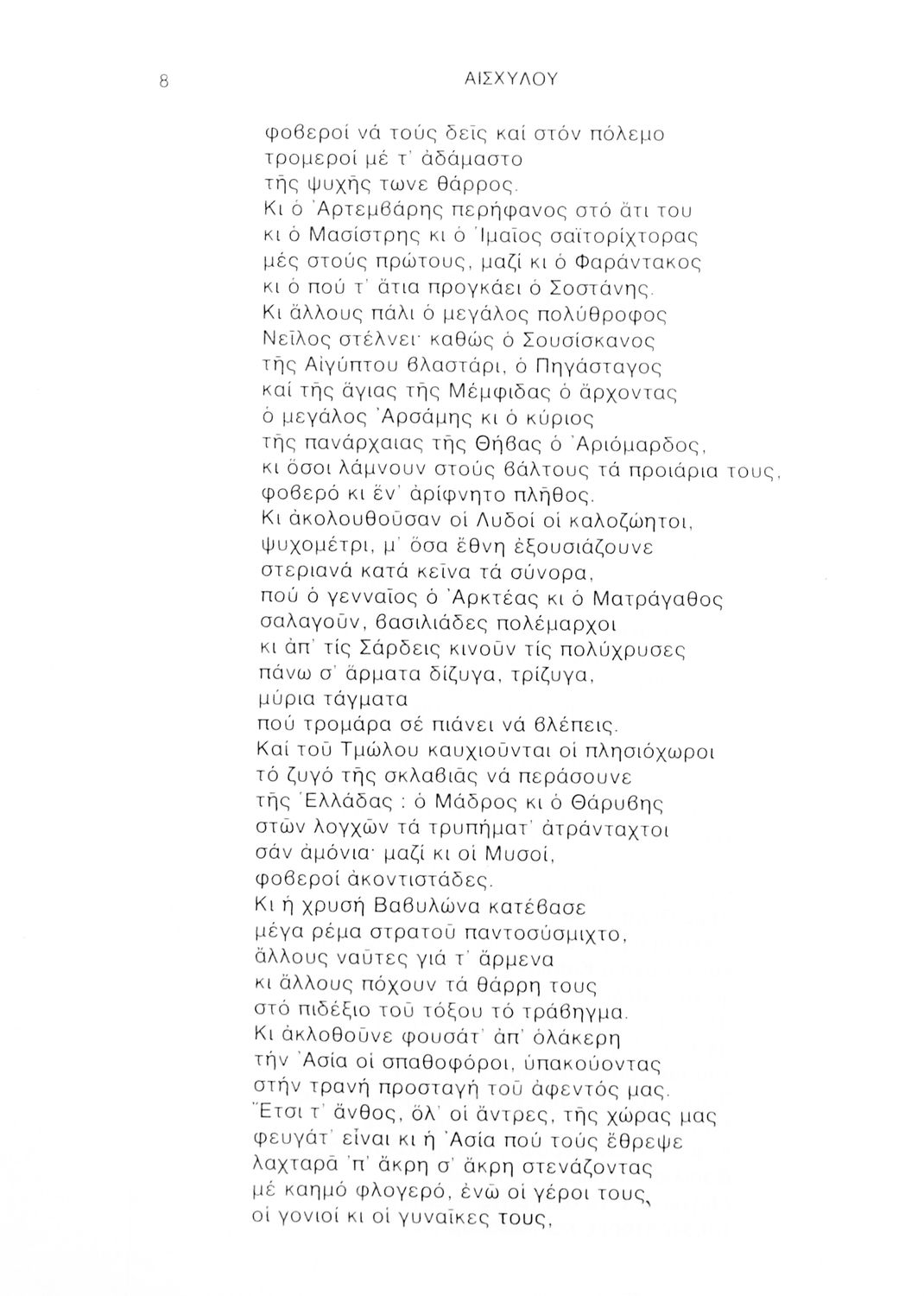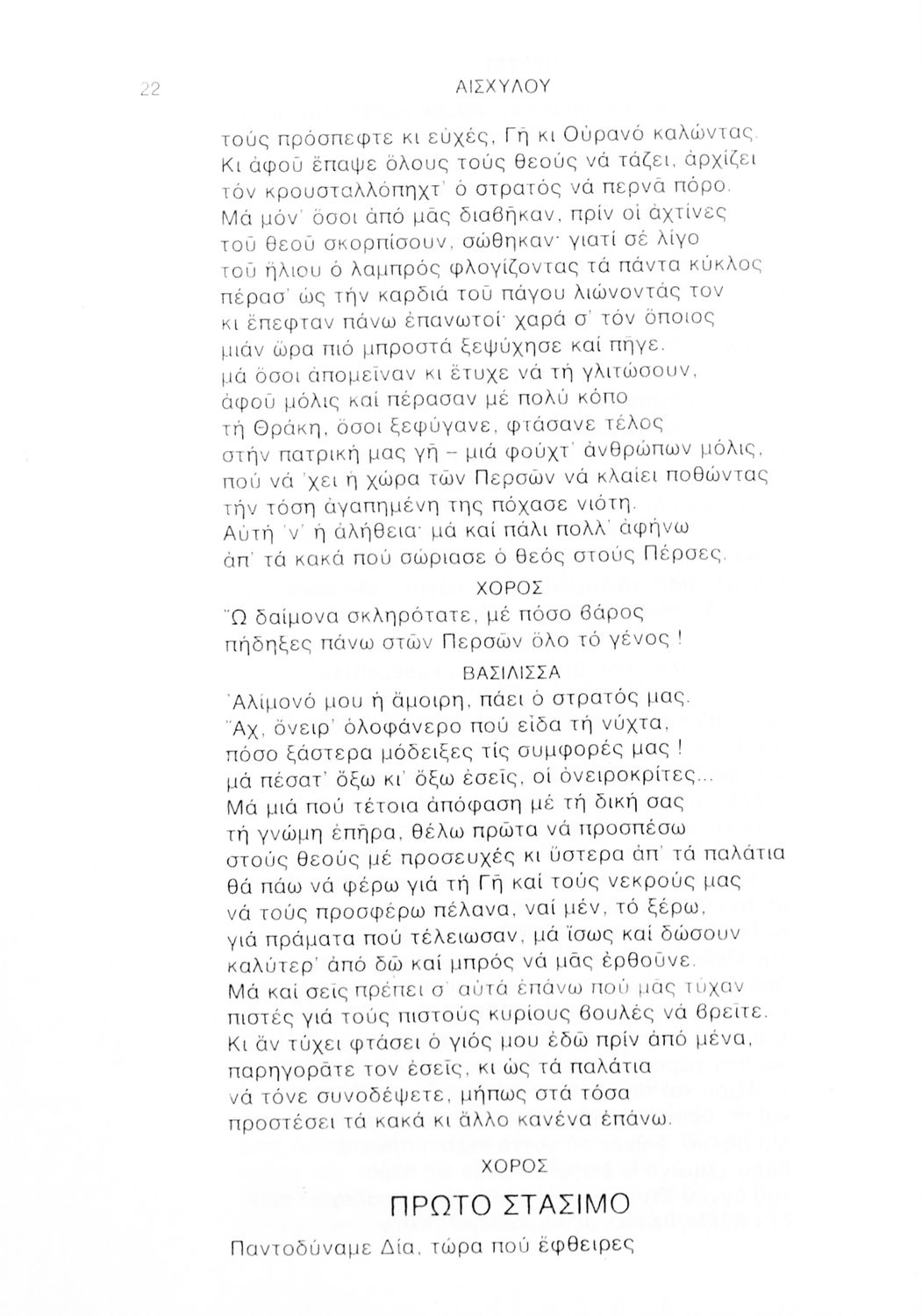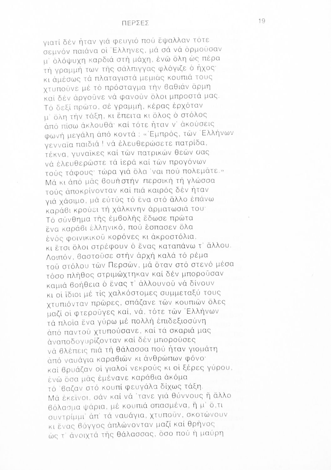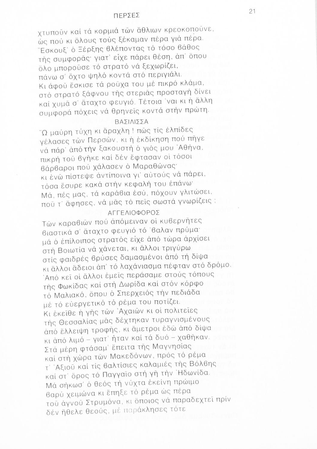 Σχολικό εγχειρίδιο Αρχαίων Ελληνικών Γ΄ Λυκείου που περιλαμβάνει αποσπάσματα από την Τραγωδία του Αισχύλου Πέρσες σε μετάφραση Ι. Ν. Γρυπάρη, εισαγωγικό σημείωμα σχετικά με την αρχαία ελληνική κωμωδία του Ι. Κ. Κακριδή και αποσπάσματα από την κωμωδία του Αριστοφάνη Βάτραχοι σε μετάφραση και ερμηνευτικά σχόλια του Θρ. Σταύρου.