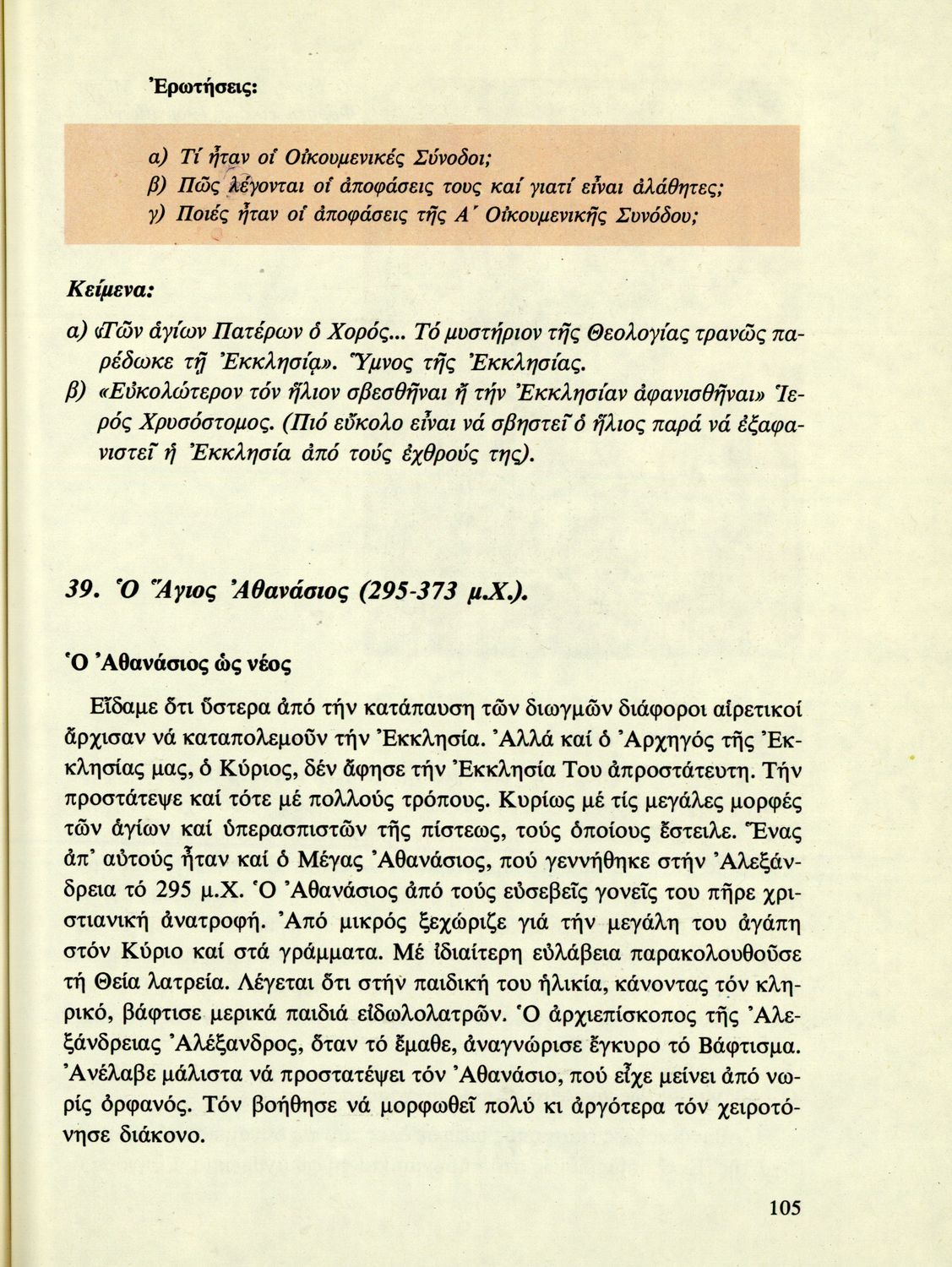 Σχολικό εγχειρίδιο Θρησκευτικών Ε΄ Δημοτικού που περιέχει την ιστορία της Ορθόδοξης Εκκλησίας από την ίδρυσή της μέχρι την δημιουργία της Εκκλησίας της Ελλάδας.
