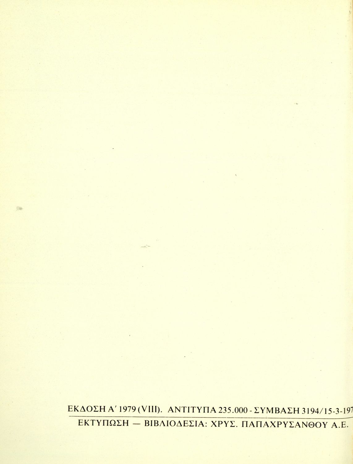 Εκδότης: Οργανισμός Εκδόσεως Διδακτικών Βιβλίων Έτος έκδοσης: 1979 Τόπος έκδοσης: Αθήνα Έκδοση: 1η Υπουργική απόφαση / Σύμβαση: 3194/ 15-3-1979 Έτος έγκρισης: 1979 |