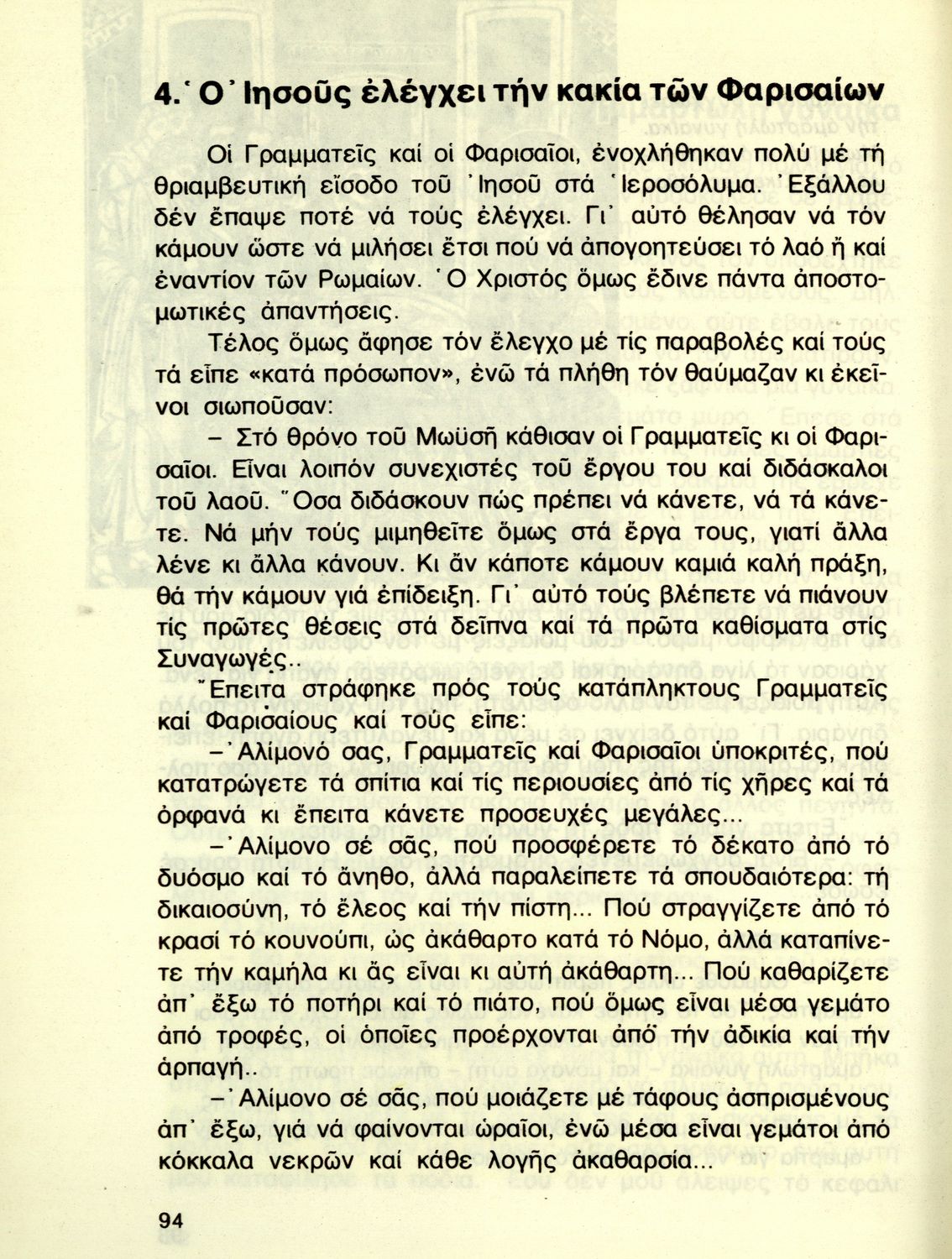 Σχολικό εγχειρίδιο Θρησκευτικών Δ' Δημοτικού που παρουσιάζει τη ζωή και τη δράση του Χριστού μέσα από τις παραβολές και τα θαύματά του. Περιέχει και ποιήματα, προσευχές και χριστιανικά θρησκευτικά άσματα.