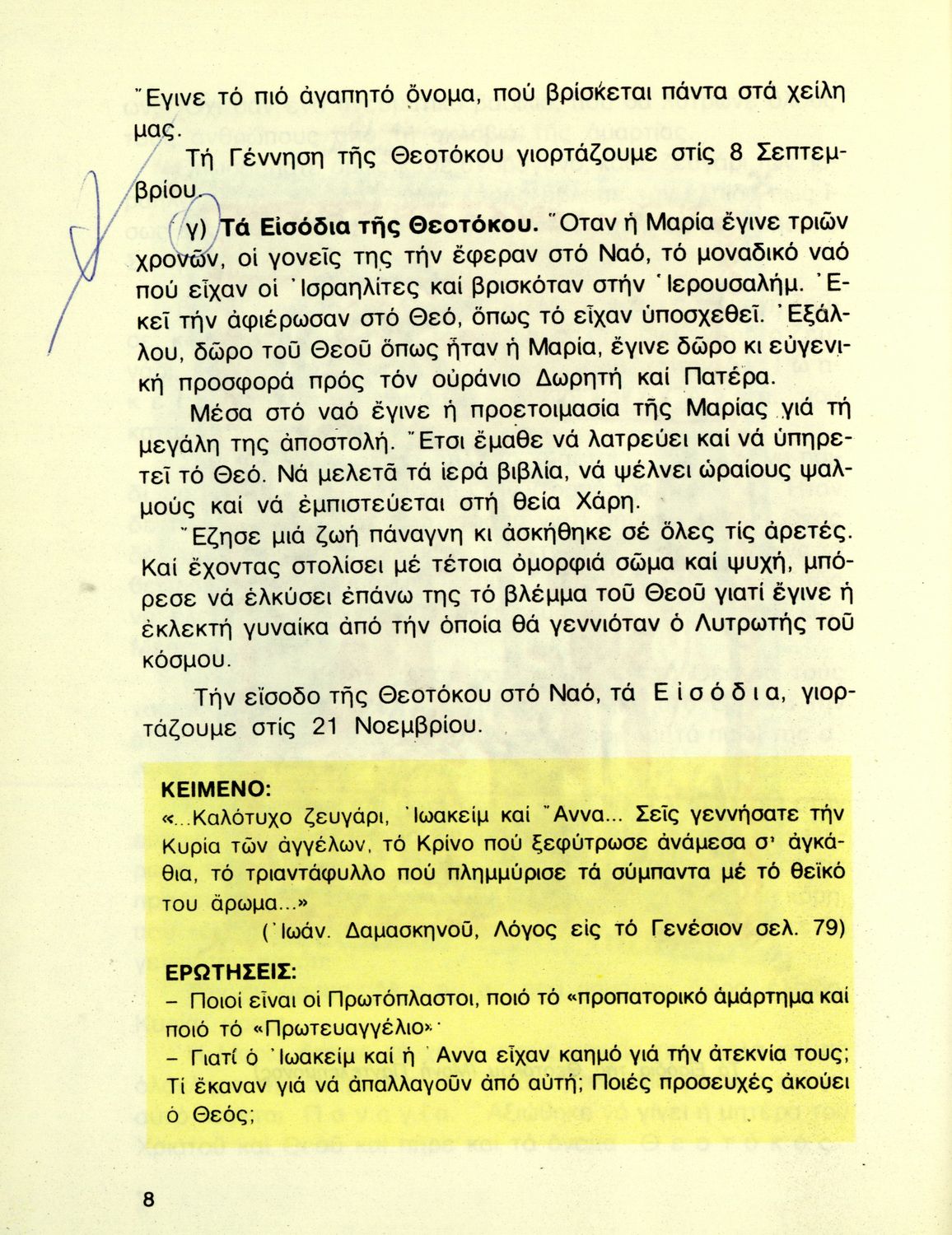 Βαθμίδα εκπαίδευσης: Πρωτοβάθμια Τάξη: Δ' Δημοτικού Μάθημα: Θρησκευτικά Γλώσσα: Δημοτική Παρουσίαση περιεχομένου: Σχολικό εγχειρίδιο Θρησκευτικών Δ' Δημοτικού που παρουσιάζει τη ζωή και τη δράση του Χριστού μέσα από τις παραβολές και τα θαύματά του. Περιέχει και ποιήματα, προσευχές και χριστιανικά θρησκευτικά άσματα. |