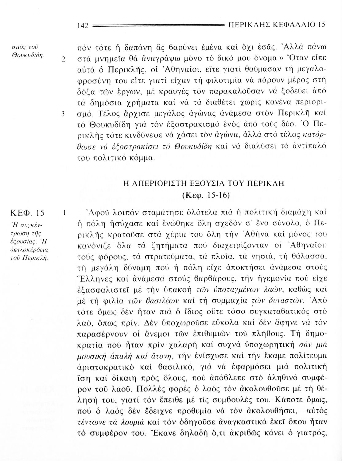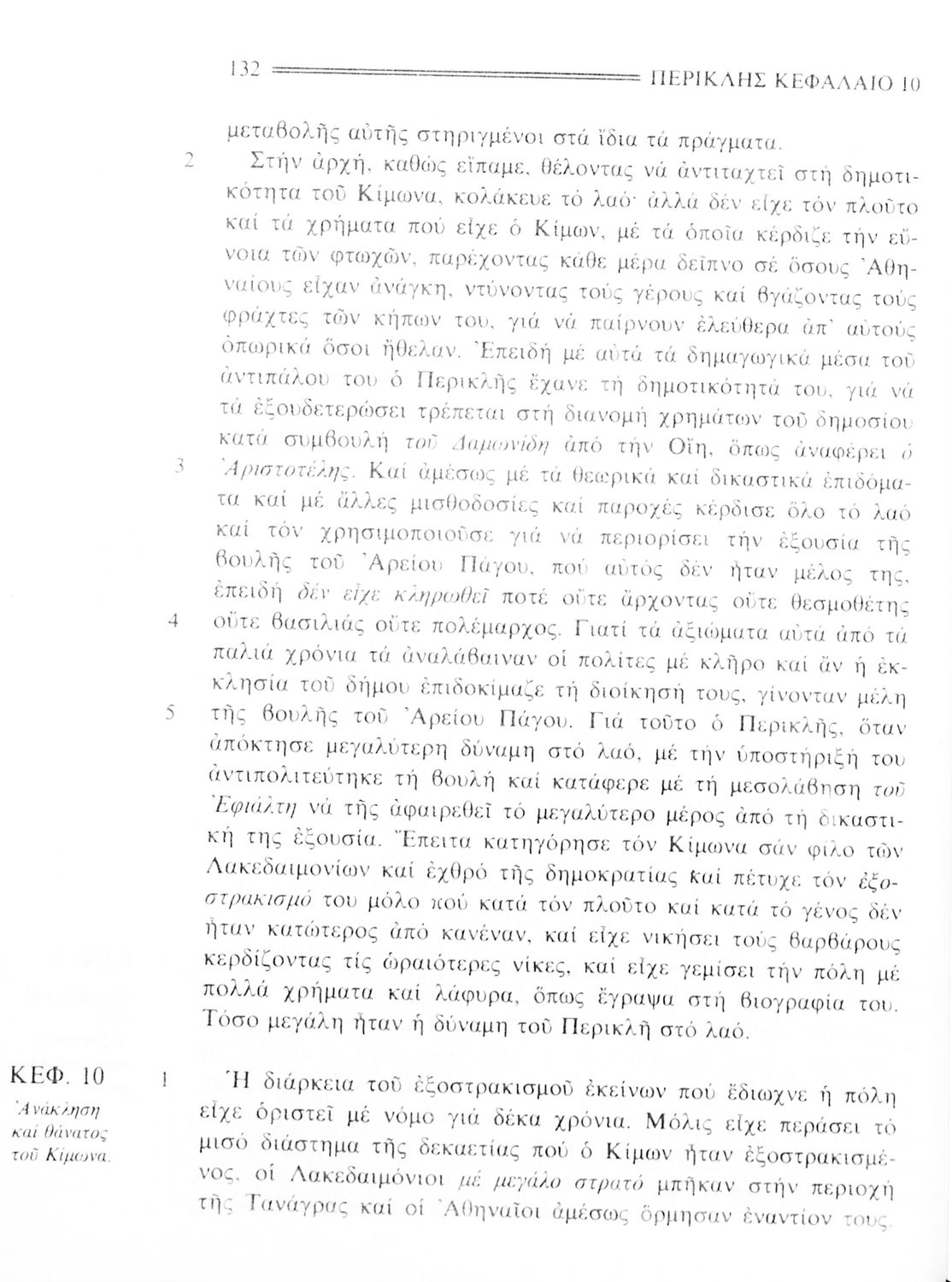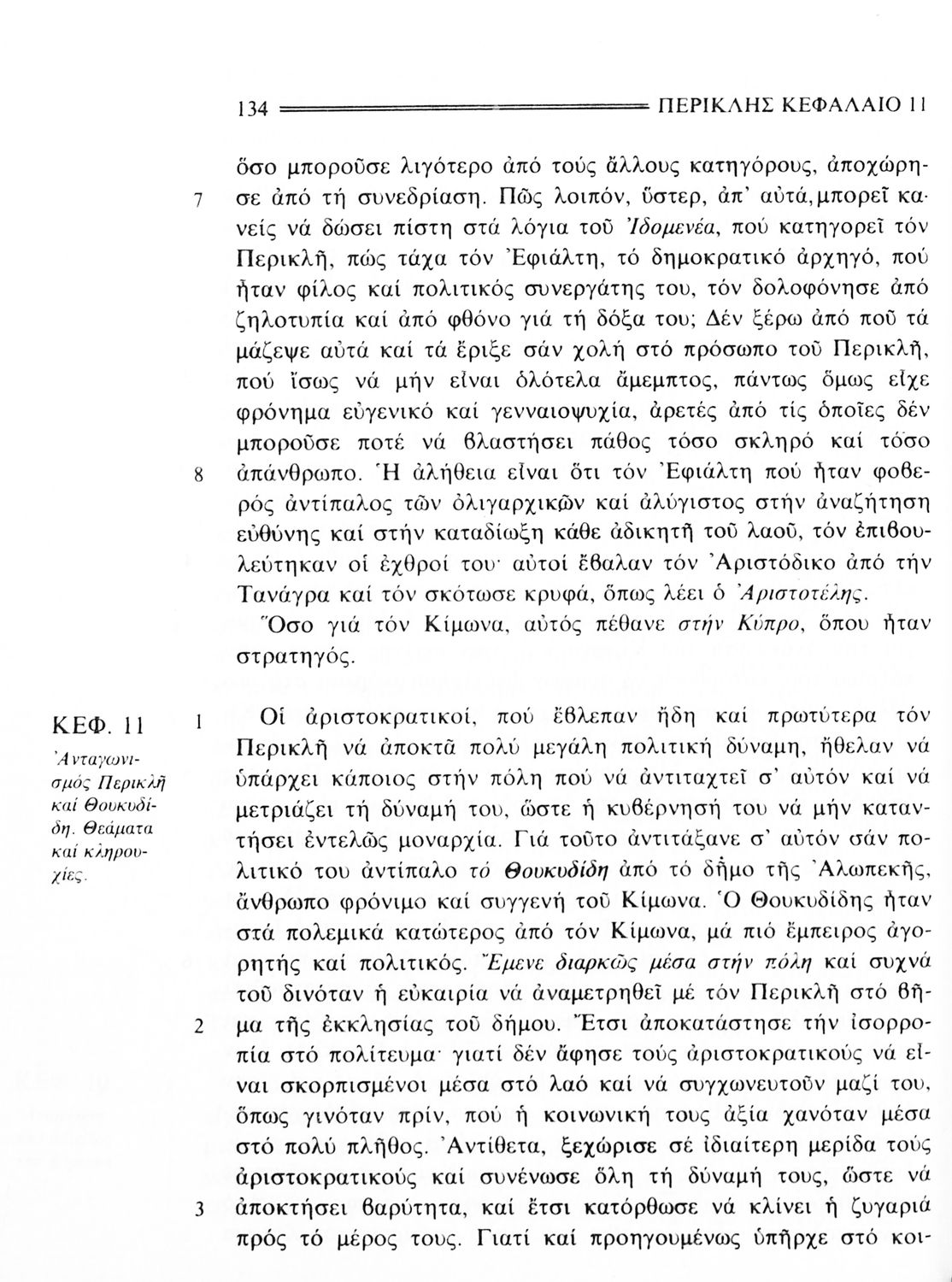 Σχολικό εγχειρίδιο Αρχαίων Ελληνικών Β΄ Γυμνασίου που περιέχει μετάφραση του έργο του Πλούταρχου Θεμιστοκλής και Περικλής, εισαγωγή και ερμηνευτικά σχόλια.
